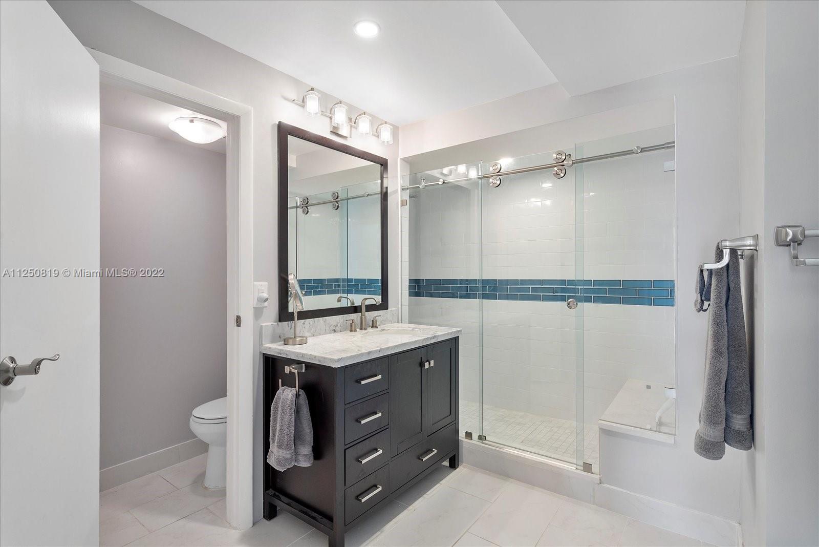 This large 2/2 has a renovated kitchen and bathrooms, is an easy stroll to the beach, and COMES FURNISHED. The primary bathroom has an 8 ft shower. Lots of light and space in this 3rd floor unit and you can see the ocean across the street. Recently installed electric roll-down window shades, assigned parking space conveys and is easy access to elevated garage. Current wind mitigation certificate available. ALL IMPACT GLASS windows with turtle compliant solar film and newer hot water heater. Building ready to install impact windows in all units so the buyer may get a credit for these windows that are already installed. There is NO special assessment.