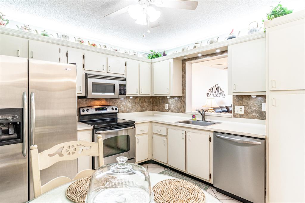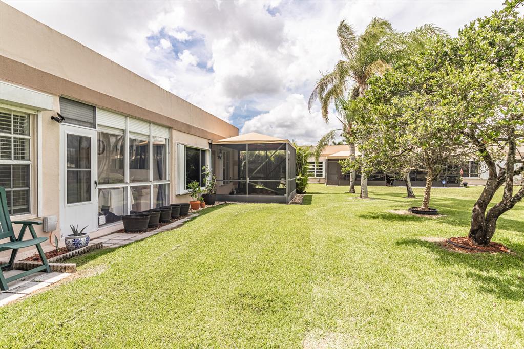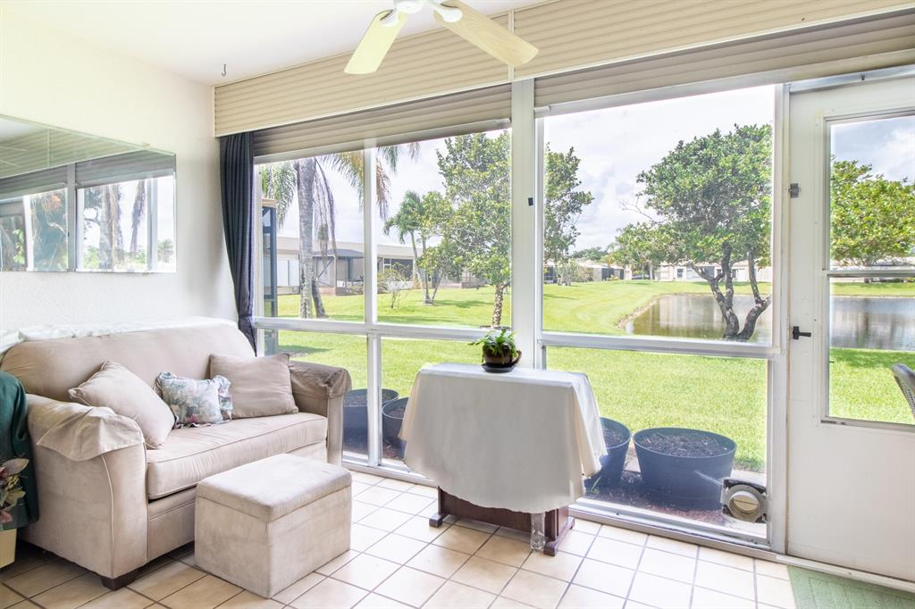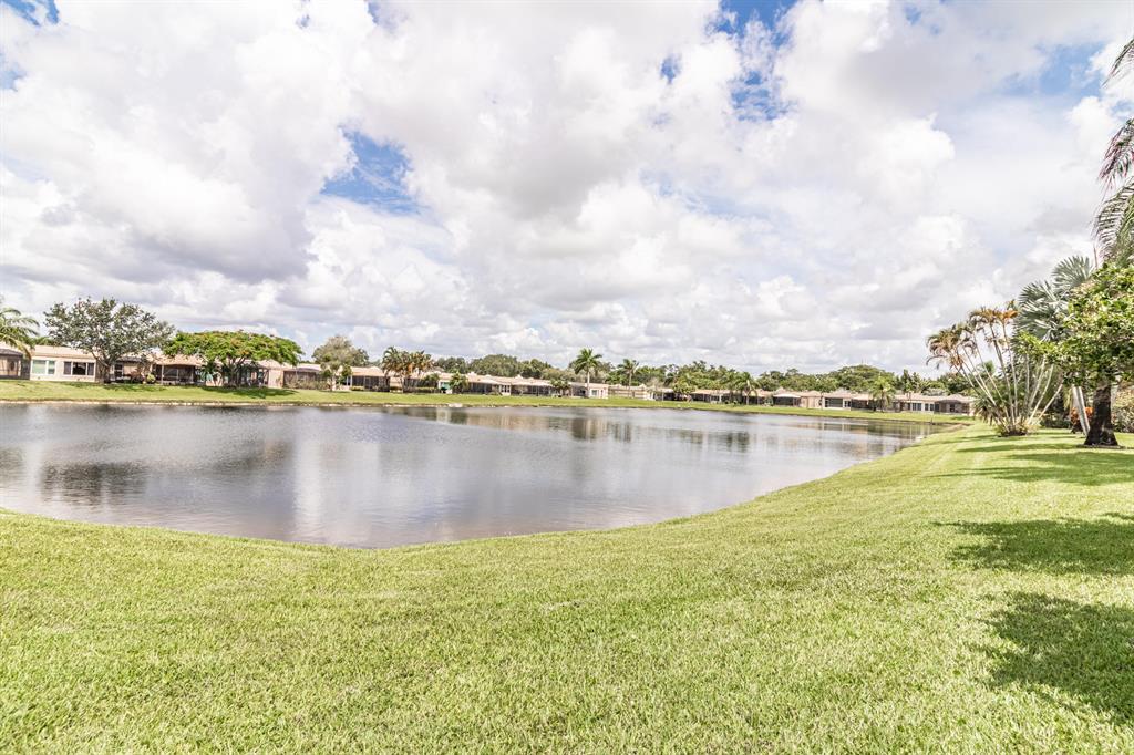Every day is lovelier in this charming lakefront home located in the desirable Town Villas community. Here you'll find an open-concept home offering updated features including new AC. Spacious lakeside sunroom offers plenty of space for entertaining or for a sunny home office or hobby room. Accordion shutters offer added peace of mind and storm protection. Large eat-in kitchen features plenty of cabinet and counter space plus stainless steel appliances and oversized passthrough. The primary bedroom suite includes an en suite bath with separate vanity area and shower with shower door. Community amenities include clubhouse, fitness studio, pool, spa, tennis courts and shuffleboard. Conveniently located close to the area's premier shopping, dining, recreation and world-class beaches.