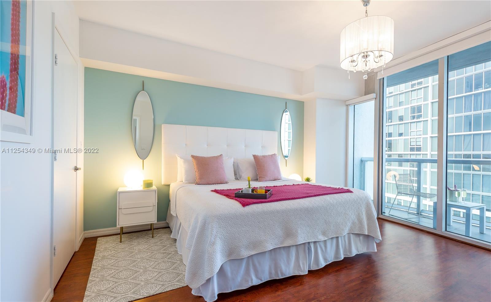 On a high floor, with views of the ocean, the 300-ft pool and Jacuzzi, and of Brickell Key, this gorgeous condo is fully furnished by an interior designer. It includes a queen-size sofa bed in the living room and is fully equipped, including its kitchen and walk-in closet, with two large TV sets, -one Smart, full-size washer/dryer, Italian cabinets, premium appliances by Wolf & Subzero and Bosch, as well as solid black granite counters. The luxurious Icon Brickell resort was designed by Philippe Starck, featuring a 28,000-square-foot spa, and fitness center, a 300-foot infinity pool (longest in Florida), overlooking the Bay, wet and dry saunas, a poolside bar, and a fireplace. It is surrounded by the Miami Circle National Historic Landmark, a small park, and the Miami River.