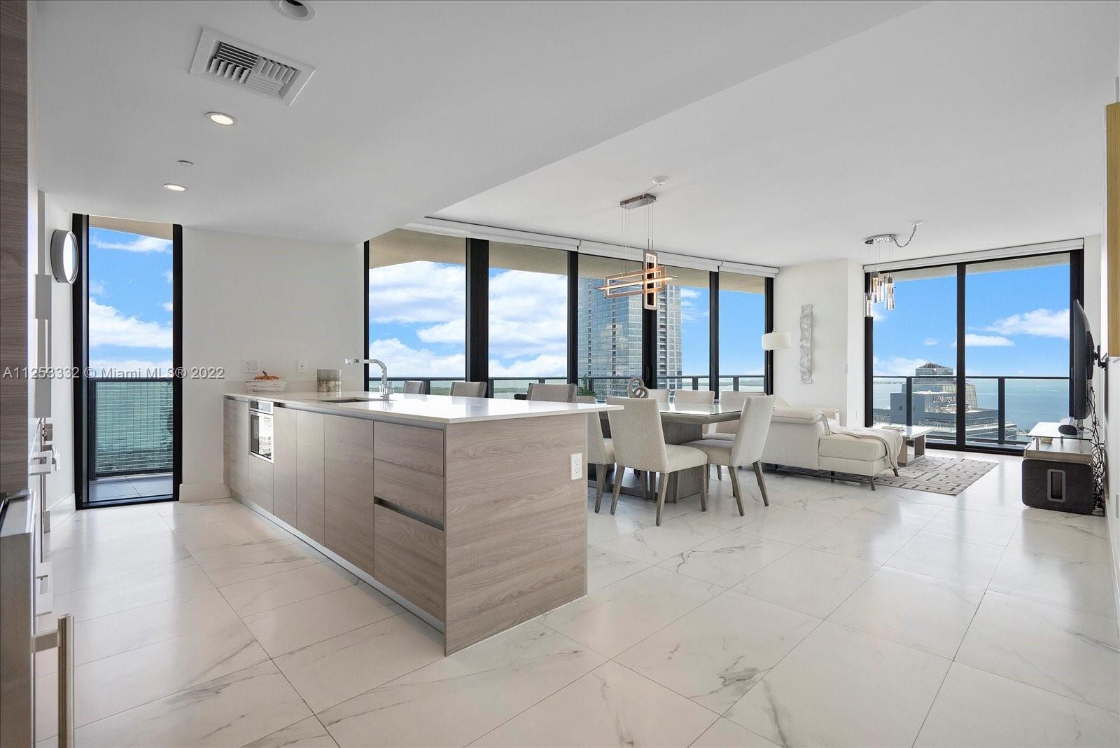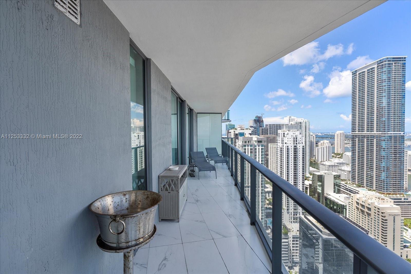 3 beds PLUS modified DEN, 2.5 baths with large wrap around balcony. Modern kitchen and stainless steel appliances. Porcelain tile floors throughout. Electric blinds in all bedrooms. Washer/dryer in unit. 1 assigned parking space. Bar, spa, gym, private theater, party room, exclusive private pool and rooftop jacuzzi and restaurant on site. Prime location in Brickell.