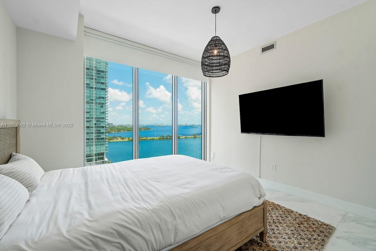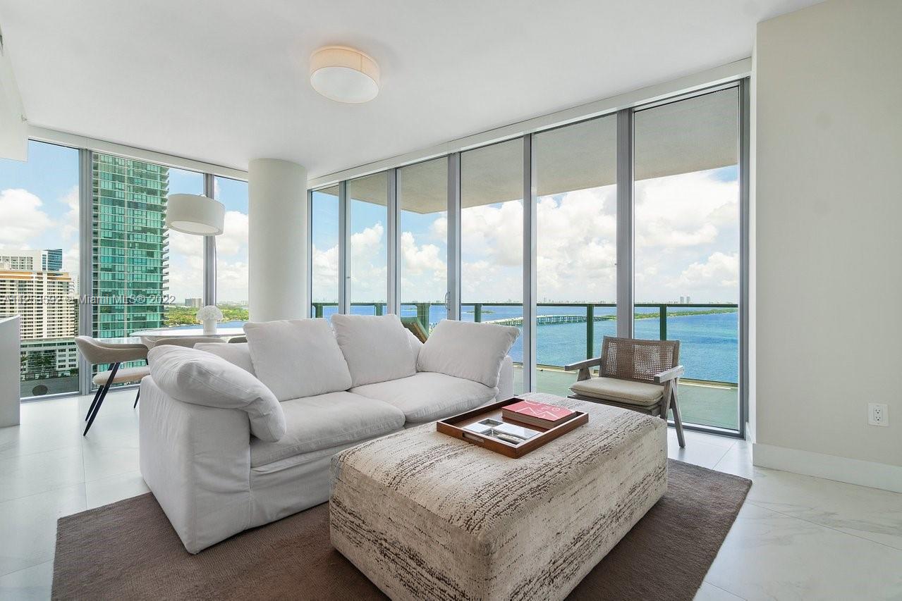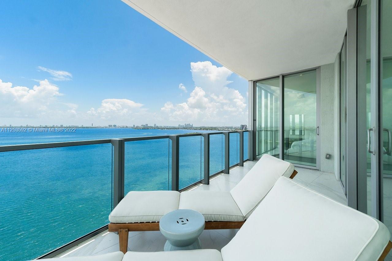 Picturesque, luxury condominium at Biscayne Beach in Miami Beach's highly sought-after Edgewater neighborhood. Offered fully-furnished by Restoration Hardware, the NE corner location on an elevated floor offers stunning direct bay views. 3 bed, 4 FULL bath, top-of-the-line Miele appliances, marble flooring throughout, and private elevator foyer. Building designed by legendary Tom Filicia, offers a zero-entry pool and lap pool, two tennis courts, half basketball court, beach club with cabanas and beach volleyball area overlooking the bay, towel service, bar, social rooms, fitness room, spa with sauna, steam room, massage rooms and a resident dog park.