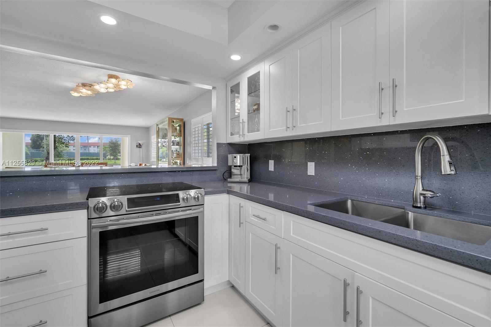 SOUGHT OUT FIRST FLOOR CORNER UNIT LOCATED IN BUCKINGHAM CENTURY VILLAGE. THIS IS A 55+ COMMUNITY. THE BEAUTIFUL APARTMENT FEATURES IMPACT WINDOWS THROUGHOUT UNIT INCLUDING PATIO/PORCH, SS APPLIANES, BEAUTIFUL WOOD KITCHEN CABINETS WITH QUARTZ COUNTER TOPS, SS APPLIANCES, PORCELAIN FLOORS, STACKABLE WASHER/DRYER, TANKLESS WATER HEATER. COMPLETELY REMODELED BATHROOMS WITH GLASS ENCLOSURE SHOWERS.