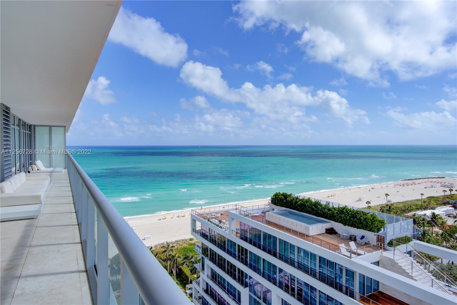 Experience the truly unobstructed views of Ocean, Beach, Indian Creek and the skylines of South Beach and Miami from this 15th floor corner apartment in the incredible Caribbean Condo. Electric shades on the floor to ceiling windows and doors, blackouts in the bedrooms, and dimmable lighting in the living room and kitchen. Miele and Sub Zero appliances, including wine cooler, gas range and built-in espresso machine. Enjoy sunrises and sunsets from the 700 square foot wrap-around balcony. Luxurious lifestyle includes beach and pool service, wine and cigar storage, spa, gym, business center, 24 hour staff, valet parking, media room w/coffee and tea service. Take the Boardwalk to Faena, Soho Beach House, Edition, and soon the Aman Miami Beach.