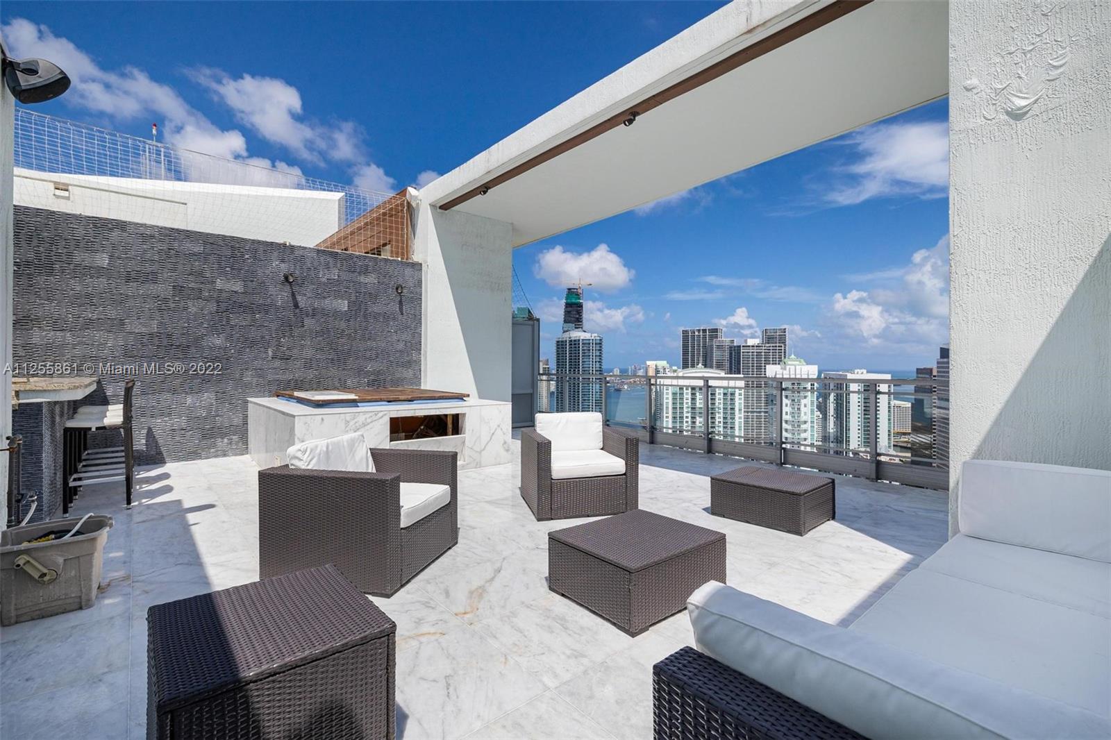 Stunning three-story TURNKEY PENTHOUSE at The Ivy, featuring 3 beds, 3 full baths, 1 half bath + Den, an enormous rooftop with a Summer Kitchen and a Jacuzzi + lounge area. The high ceilings in the living-room will fascinate you as well as the cement great wall upon entering the unit, making it very up-to-date and trendy. Conveniently located in the heart of Miami, The Ivy, is close to the Brickell City Center, to restaurants, shops and so much more. The Beaches are a 15 min drive, Wynwood is about 10, and the airport about 20 min away. The building offers infinity-edge pool, lap pool, fitness center, spa, club room, barbecue and picnic area and meditation gardens. There is also a Dry-Cleaner and ATM machine on the first floor. This is a true home in the sky!!