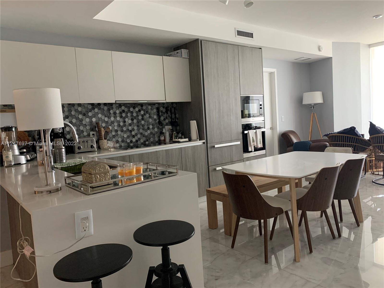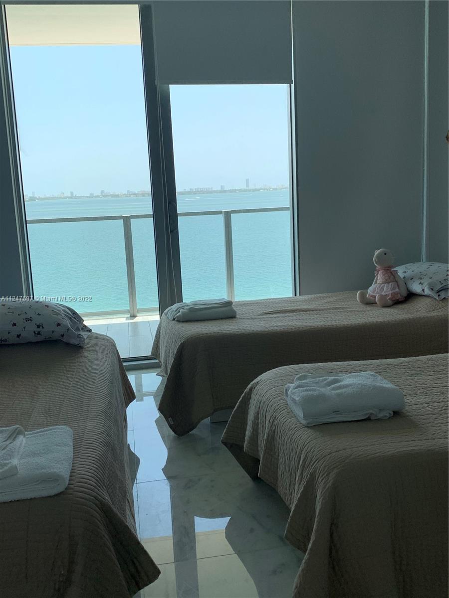 Spectacular 2 Bedrooms + Den with direct water views from everywhere. Private Elevator/foyer. Unit comes with a Storage and Parking space on the same 4th floor. All furnished. Den is set up as an office or could be a 3rd bedroom for guests as has a convertible bed. Top of the line appliances and building amenities such as: tennis courts, half basketball court, spa, business center, children play area, two pools, cabanas, etc. Edgewater neighborhood is located in the heart of it all: easy access to the causeways to Miami Beach, walking distance to Midtown and Design District, very close to Wynwood.