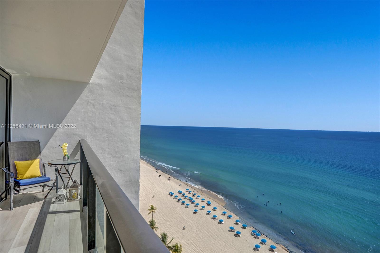 Direct Ocean Views from the 17th floor will take your breath away! Enjoy turquoise colors of the ocean from your large Balcony-terrace Rarely available unique residence will be your one-of-a-kind Oasis on the Beach! Newly ewmodeled building, glass balconies and hurricane proof windows, lobby redone by Steven G Interiors. Building amenities includes: two infinity pools, GYM, Beach Services. Perfectly located in the heart of Hollywood Beach, walk to famous Hollywood Beach boardwalk with many restaurants and shops, life concerts and more. Just a minutes drive to Aventura and Bal Harbour Malls, Fort lauderdale International Airport.