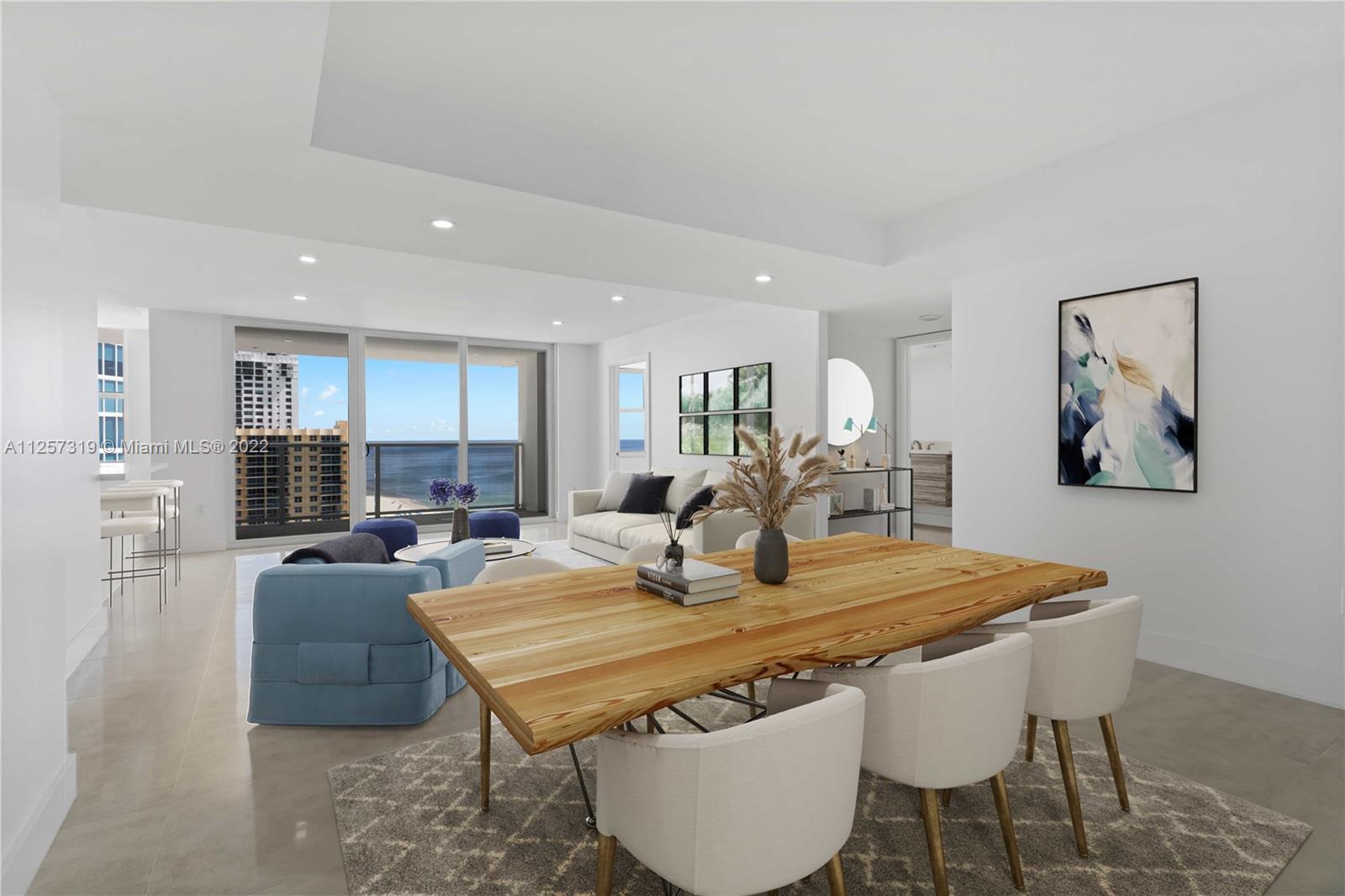 No expense spared. Welcome home to your completely renovated 2bed/2 full bath, modern & elegant, Ocean View Condo on Beautiful Hollywood Beach. Walls have been removed to create a Fabulous Open Concept. All new impact windows/doors, & appliances. Owner's Suite has Walk-in Closet & en-suite Bathrm w/ Separate Tub & Shower. 2nd Bedrm fits a King bed and has a ensuite Bathrm with shower. Utility room includes a Washer/Dryer & Sink. Amenities include, 2 pools, 2 Beach chairs & umbrella with Beach Attendant, Gym, Restaurant w/Outdoor Seating, BBQ, Game Rm, Salon, Valet Guest Parking. All work done through a licensed contractor w/permits. All permits are closed. *NOTE CURRENT SPECIAL ASSESSMENT OF $522/MONTH ($64K TOTAL REMAINING) TO BE PAID OFF AT CLOSING BY SELLER WITH A FULL PRICE OFFER.