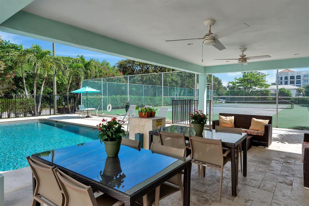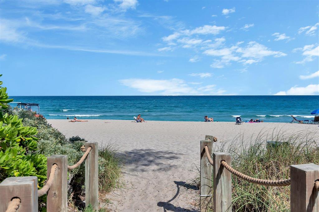 Beautifully appointed & spacious 2 bedrm, 2 bath 'Turn-key' furnished unit with huge balcony overlooking 'Tree View' in one of the few 'Pet Friendly' Boutique buildings by the Beach on A1A! Hear the waves & feel the Ocean Breeze! Updated kitchen & bathrooms, 24'' diagonal natural stone flooring throughout, ALL New Impact LoE Glass Doors & Windows. Split Bedroom Plan! 2018 Washer/Dryer in unit! New custom closet organizers, AC 2017, Assigned 1 car garage parking, Walk to Shopping, Restaurants, Sought after Location in Boca with Private Tennis Courts & Pool, Beach entry directly across street at South Beach. Shows beautifully! For the Fussiest of Buyers! *The condo is tastefully furnished & offered with an active 'prepaid' lease in place for great returning tenants (Nov 1, 2022-May 1, 2023)