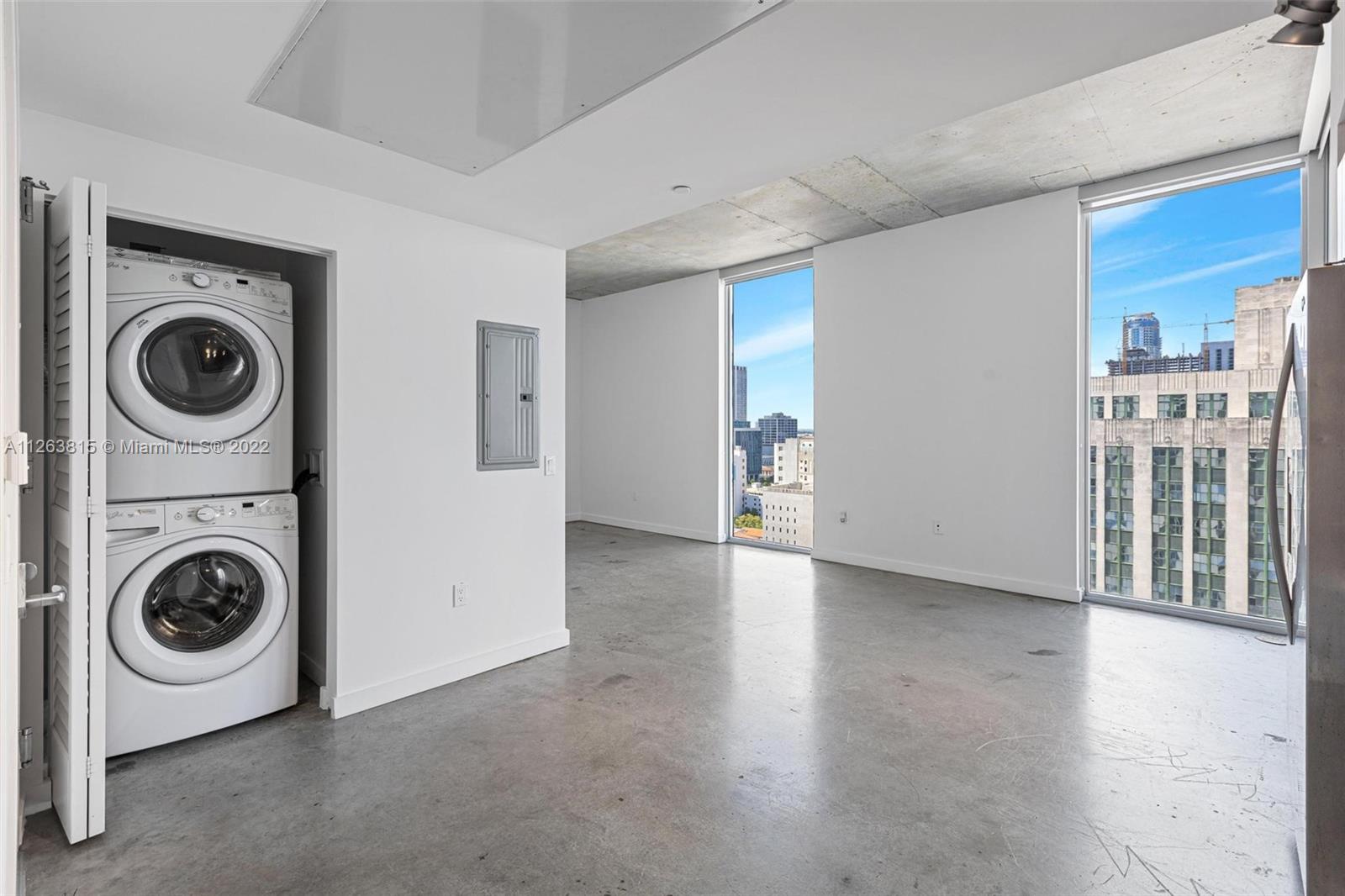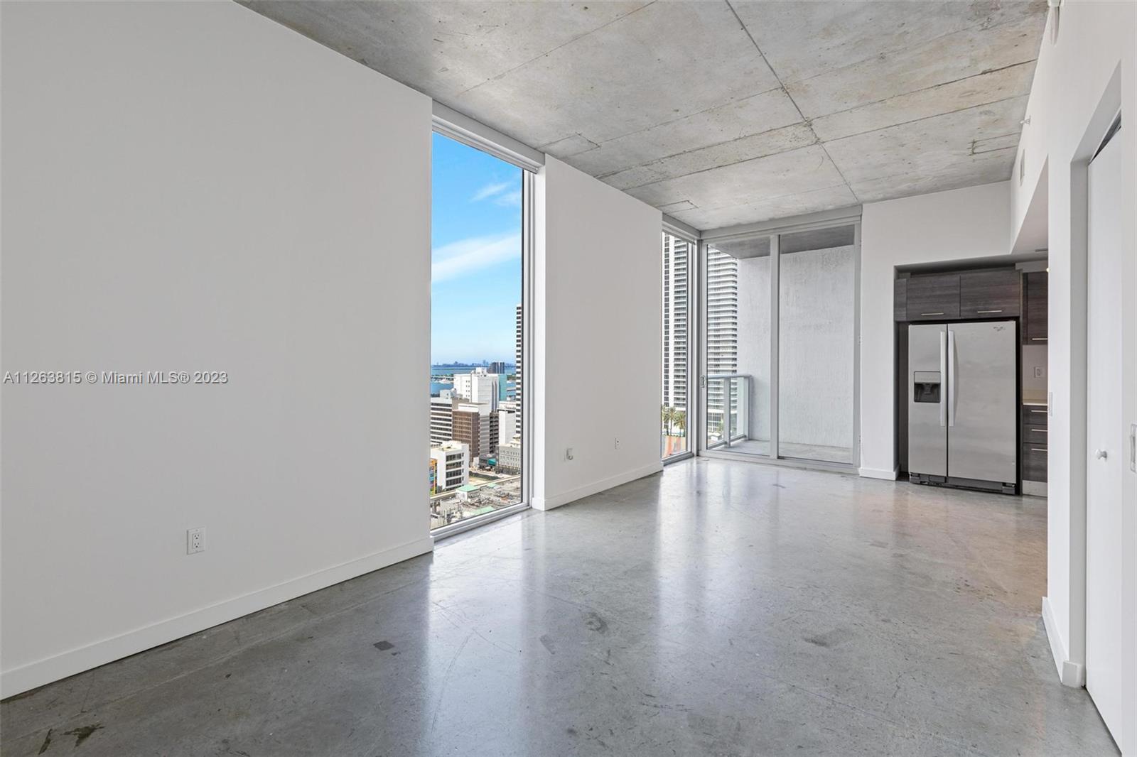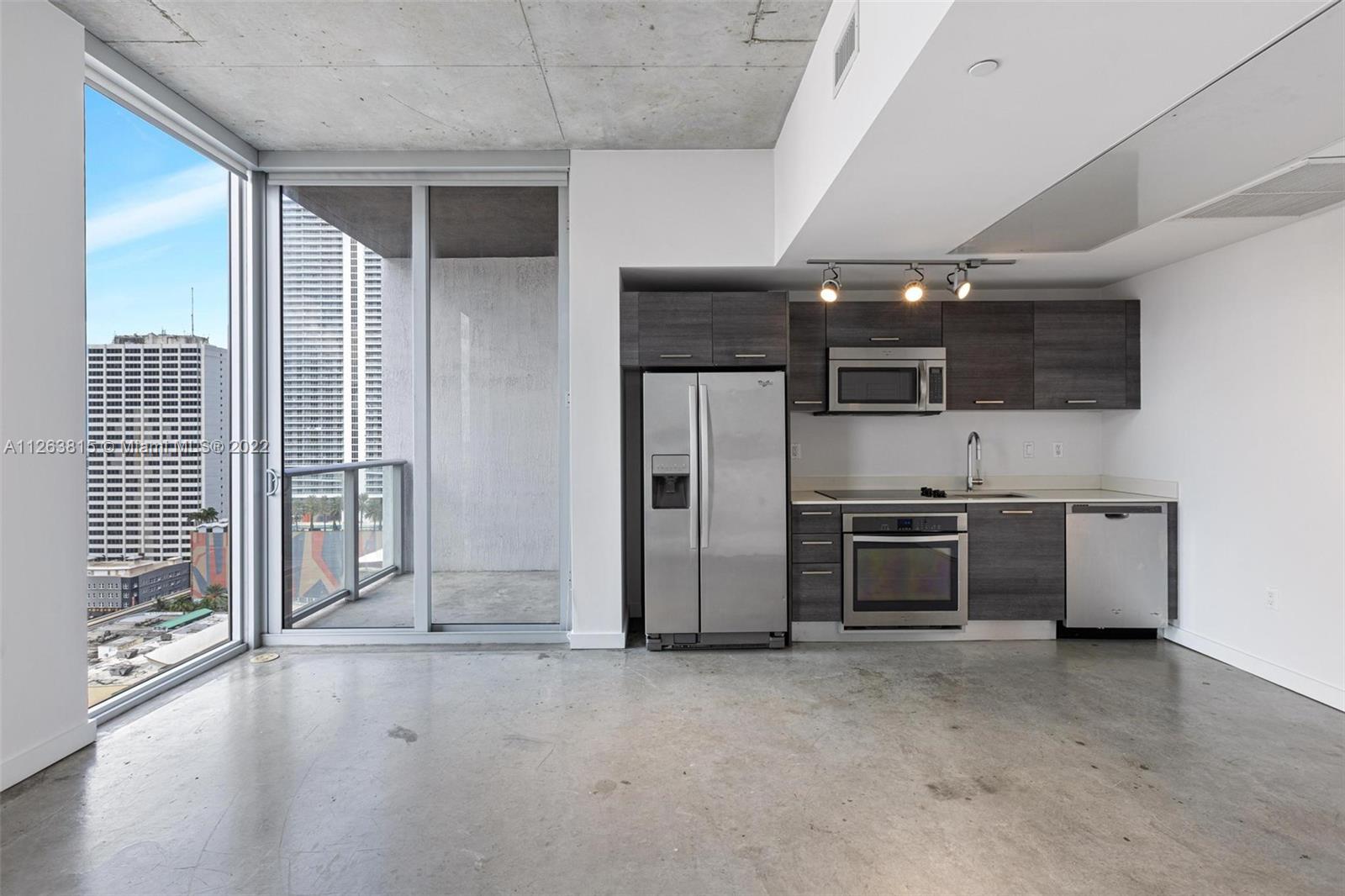 Loft style, 1 bed and 1 bath in modern unit Concrete floors, Washer/dryer in unit. 10” high ceilings. Floor-to-ceiling windows with panoramic OCEAN views. Amenities include a rooftop pool, gym, spa, 2-story recreational area, and skyline lounge. 2 blocks away from Brickell, metro mover, and restaurants. Great for investors, can be rented right away. Parking is not included. Valet service is offered or self-parking across the street.tenant occupied until 01/2024