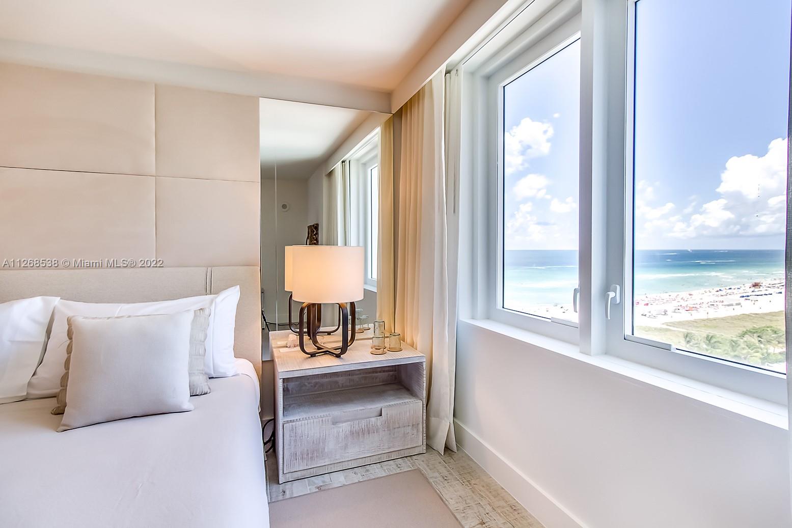 Stunning ocean views with glass tip balcony! Short term/nightly rentals allowed, owner received Exceptional Rental Return! Delivered furnished with Full kitchen, oversized living room and bedroom. Hotel living with private rooftop pool,bar & sand filled lounges.Restaurants serving the finest in organic cuisine.Private residents lobby,concierge & chauffeured Tesla.600 linear ft. of beachfront,4 pools,14,000 sqft fitness center,Bamford Spa,beach & pool service,valet & more.