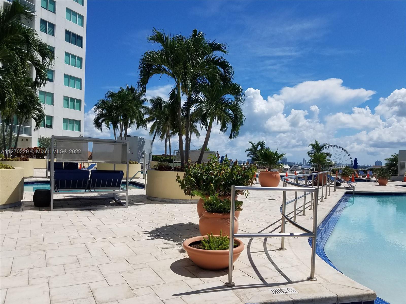 Spectacular 1BR / 1BA in Vizcayne South Tower! New laminate floors. One assigned garage parking space and storage locker. Pool and city views. Amenities include; a 3 story clubhouse and four pools. Great location across from Bayside Marketplace and American Airlines Arena. Within walking distance of the Pérez Art Museum, the Science Museum and the Performing Arts Center. 4-story, 35,000 square feet amenities building with centers for Health, exercise, beauty, and wellness. Entire first floor dedicated to Spa and beauty services; the second is a gym center, and an outdoor jogging track on the fourth floor. Approx. Two-year-old washer, dryer, and AC unit.