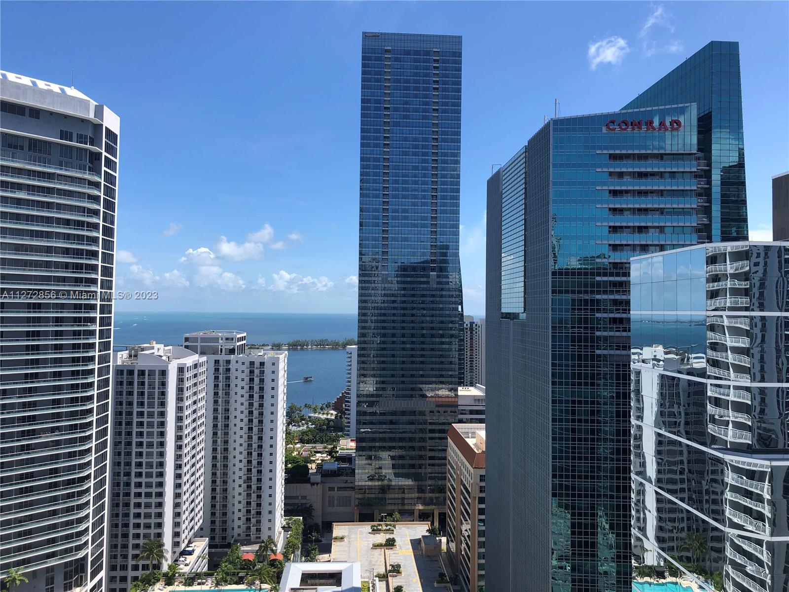MASSIVELY REDUCED Why pay for someone else's renovation when you can make this unit your own? It is the LEAST expensive unit on a HIGH floor with the coveted SE WATER view of Biscayne Bay and Key Biscayne. This LARGE 1/1 unit has gorgeous balcony with bay & city views from high floor 32. Tile floors in kitchen/bathrooms, carpet throughout makes it easy to replace flooring. Air Conditioner was replaced in 2019 & hot water was replaced in 2022. Otherwise, Sold AS-IS. No appraisal contingency. Low $630 monthly maintenance fee includes hot water, cable & internet, one assigned parking space, & resort style amenities in the heart of Brickell. Investors welcome! Building allows for short term rentals. Easy to see! Unit is vacant and a courtesy key is available.