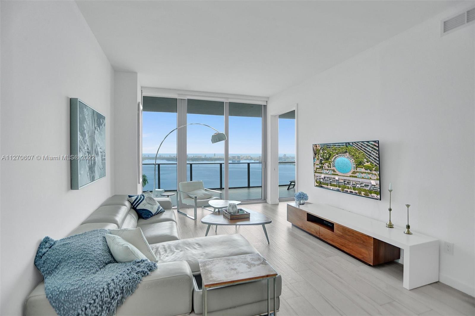 Enjoy breathtaking views from the 46th floor at Gran Paraiso Condo in Edgewater Miami. This spacious condo boasts three full bathrooms, private elevator entry, high impact glass doors, 10' ceilings, porcelain flooring and has the larger, 10' deep balcony that forms part of the facade "bubble". High-end finishes include ItalKraft cabinetry, Sub-Zero + Wolf appliances, top of the line bathroom fixtures and motorized shades in master. Unmatched amenities include a 100' wide resort style pool, tennis courts, bowling alley, fitness center, spa and movie theater just to name a few! Also enjoy the BeachClub & award winning restaurant at Amara by acclaimed chef Michael Schwartz. Located in Edgewater & close to Midtown, the Design District, downtown Miami and M. Beach. (agents see Broker remarks)