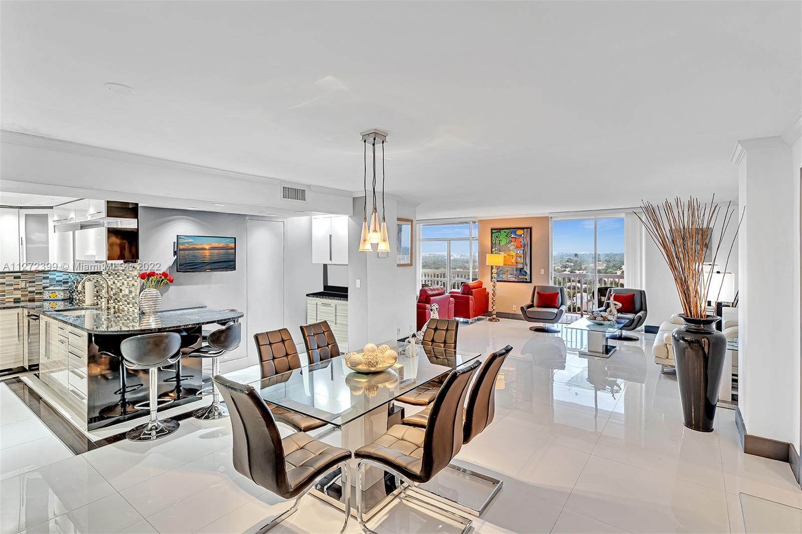 SPECTACULAR INTRACOASTAL & OCEAN VIEWS FROM THE WRAP AROUND BALCONY OF THIS REMODELED 2 BED/2 BATH SPACIOUS UNIT. NEW HURRICANE IMPACT WINDOWS WILL BE INSTALLED BY THE ASSOCIATION AT NO CHARGE. PORCELAIN TILE FLOORING, MODERN KITCHEN FEATURES JENN AIR APPLIANCES, GRANITE COUNTERS W/CONVENIENT COUNTER SEATING. LIVING ROOM IS AN “L” SHAPE DESIGNED TO BE OPEN BUT CAN EASILY BE CLOSED OFF AS THE SECOND BEDROOM. THE PRIMARY BEDROOM IS LARGE W/A BEAUTFUL REMODELED BATHROOM W/HUGE SPA LIKE SHOWER, SEPARATE ENCLOSED TOILET & LARGE WALK IN CLOSET. THE SECOND BATH WELL LOCATED NEAR THE SECOND BEDROOM IS REDONE AND HAS AN OVERSIZED SHOWER W/TWO SHOWER HEADS FOR TOTAL LUXURY. THE UNIT FEATURES MANY CLOSETS & THE BEST PARKING SPOT IN THE BUILDING! ENJOY EXERCISE ROOM, POOL, BILLIARDS, STORAGE, & MORE!