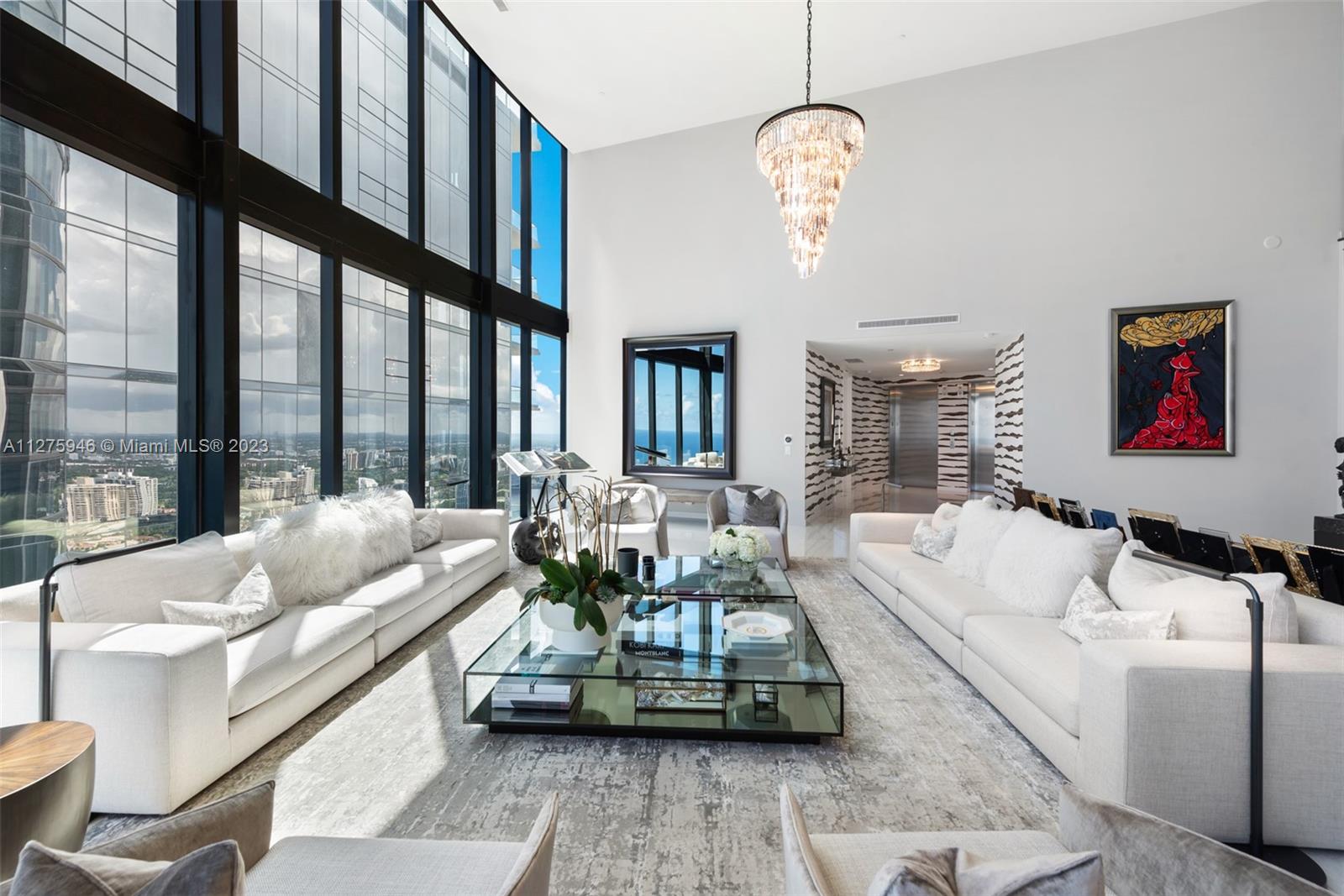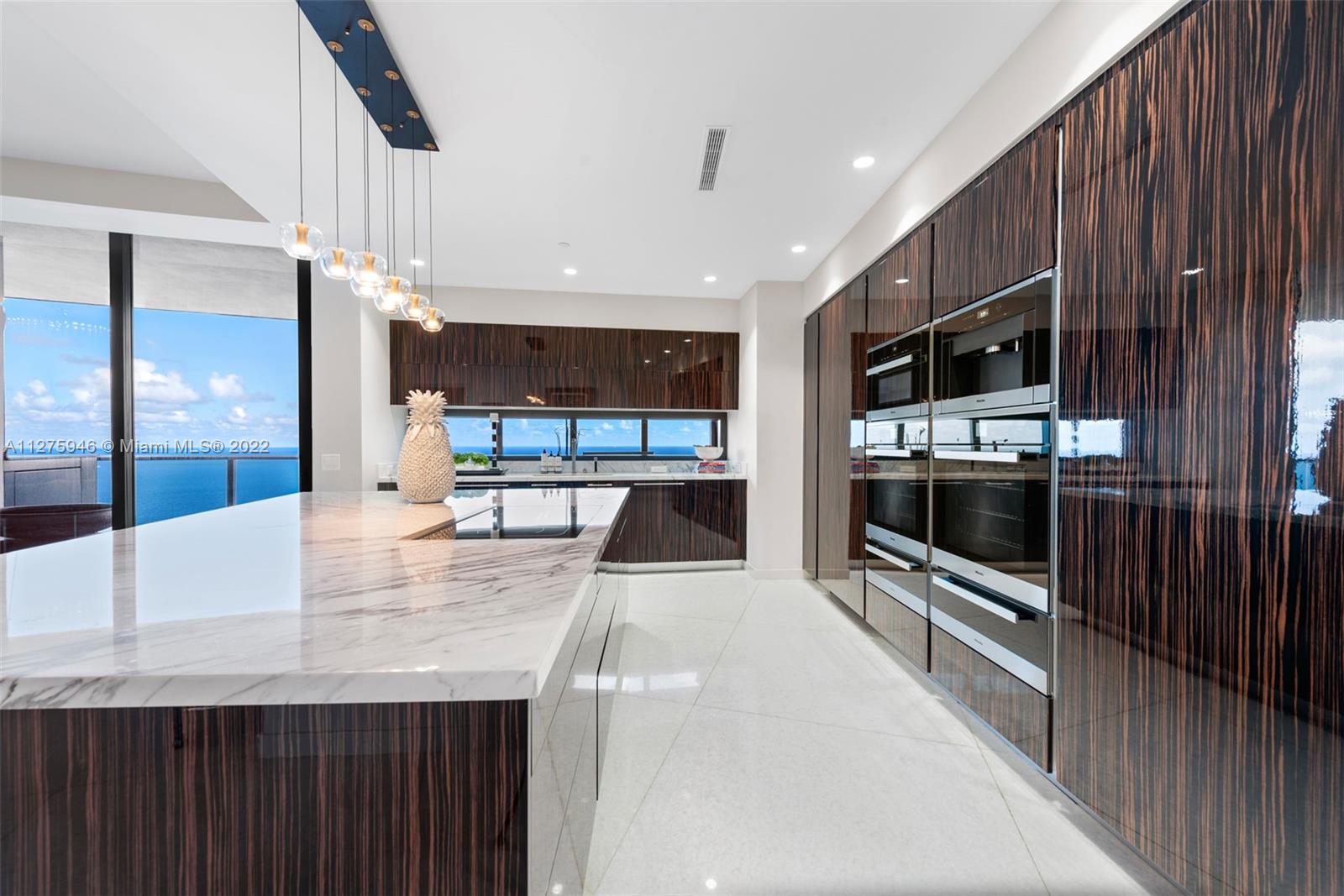 This is the last lower PH, a true high-end oceanfront residence, ( Double level floor plan with 22 foot windows in the living room ) 48x48 Italian marble floors flow throughout, two spectaculars master suites,2 impresive terraces equipped with a ultra modern pool, summer kitchen, lounging area as well a enclose terrace for a beautiful breakfast or a romantic dinner. One of the few units with 4 car garage and a private elevator inside the unit, private beach club for residents only, beautiful sunset pool, building amenities: Movie theater, private restaurant, state of the art gym, VRX motion Z-55 racing simulator.