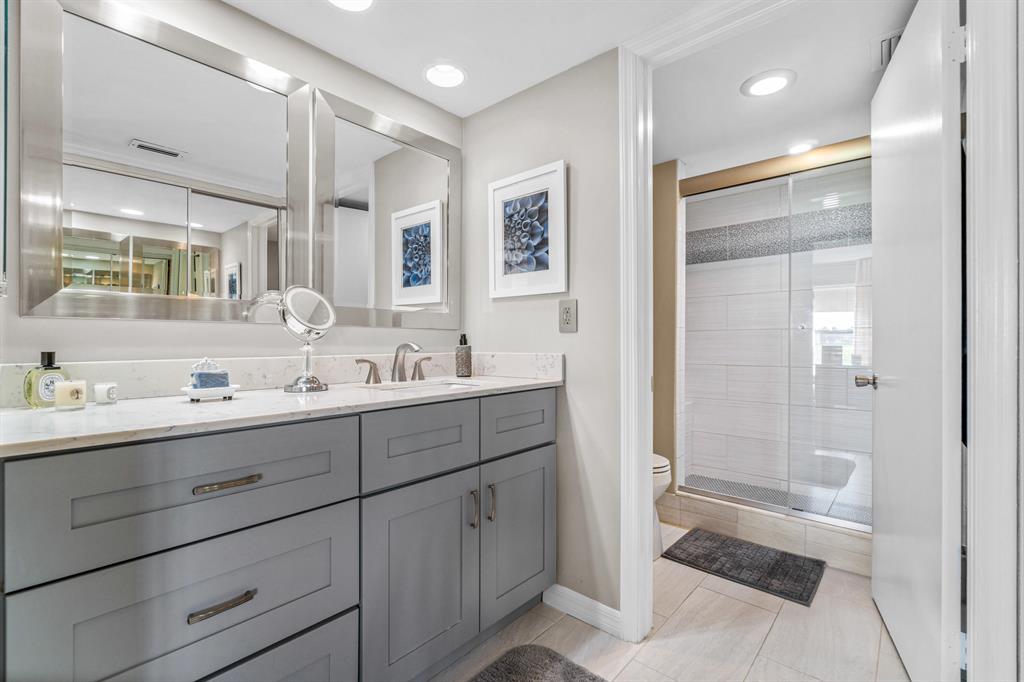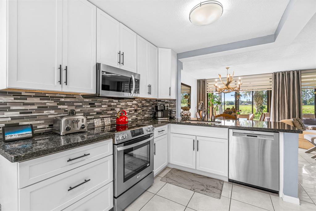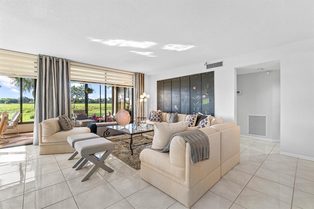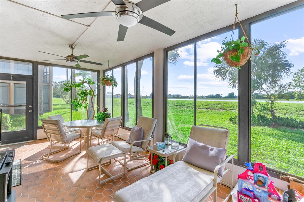Beautiful 55+ condo in Desirable Boca Chase CommunityVery Spacious 1st floor Condo with Open Floor Plan. 2 bedrooms 2 Bathroom with a DEN (or 3rd bedroom). Renovated Bathrooms and Kitchen with updated Cabinets and Pull outs, Granite Countertops, Tile Backsplash and Stainless-Steel Appliances. Full size Washer/Dryer with lots of Storage. Very Spacious Primary Bedroom with large Closet Space. Covered Lanai overlooking serene Water views. No rear neighbors! Great for Entertaining. Lots of Natural Light thru-out. Designer Automatic Window TreatmentsSweetwater offers low Condo Dues which include Pool, Tennis Courts, Fitness Center and walking paths thru-out the community. Close to all shopping and restaurants.