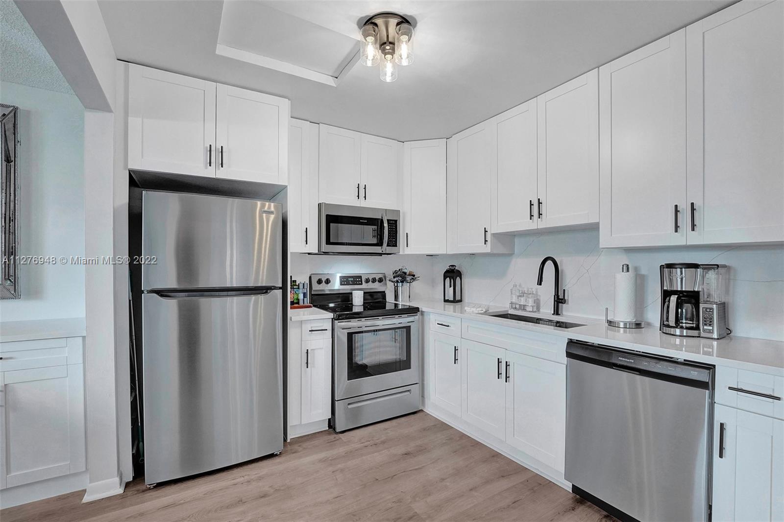 Want to move to Century Village & a new home the DOES NOT require thousands of dollars$$$ in renovations? Completely remodeled from head to toe-unique frontdoor of this property is tucked back in it's own private hallway. Once you enter- your stepping into luxury & serenity. Custom kitchen with dreamy white cabinets and stunning quartz counter. Open floorplan in dining room with custom breakfront for entertaining & extra storage. Immaculate bathroom w/custom tub/shower. The master bedroom is the ultimate retreat that has custom closet to keep you organized. Open floorplan allows you to relax in the living room as you look out over gorgeous golf and lakeview situated among large shade trees. Steps to the laundry room and trash chute- did I mention the elevator for the building is NEW?