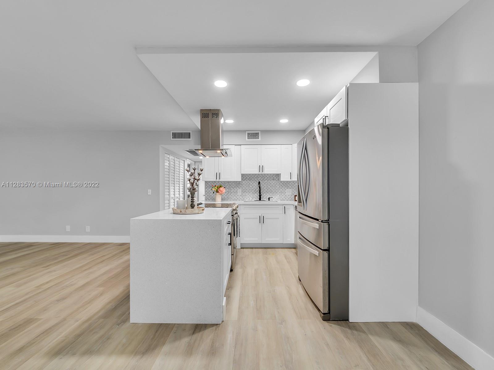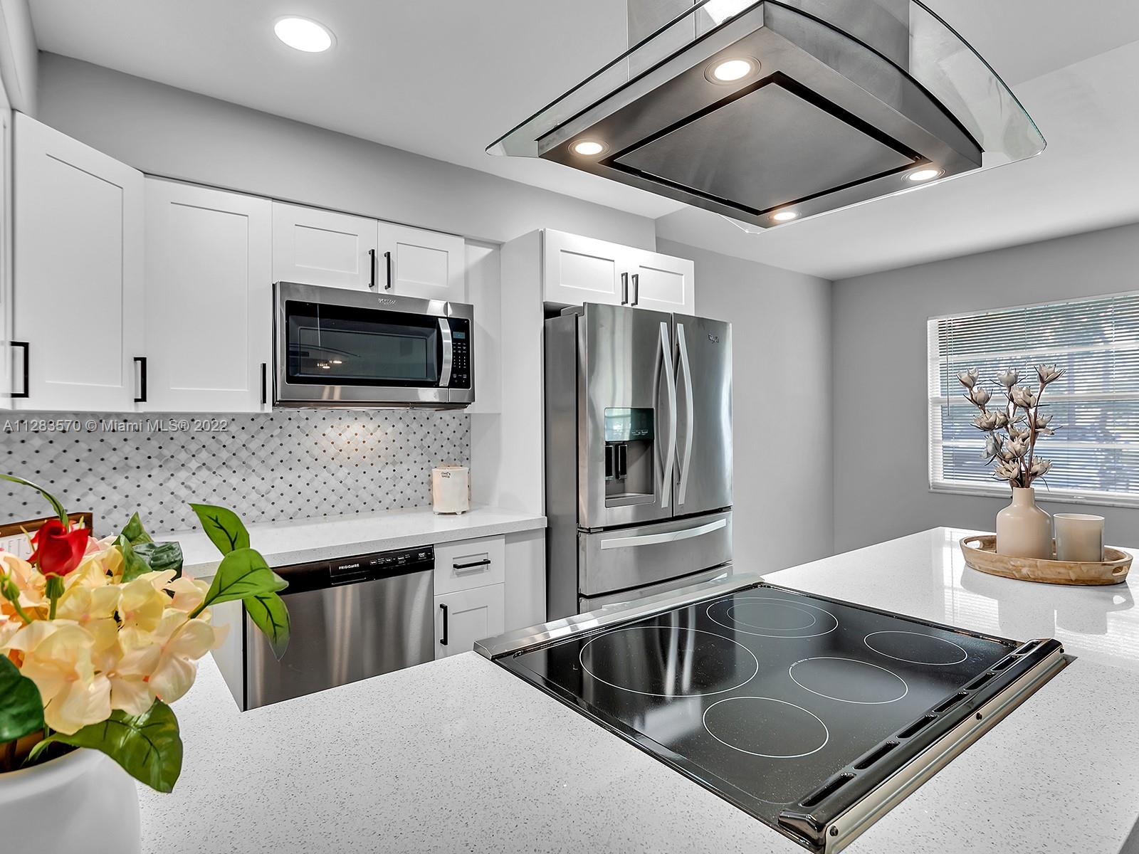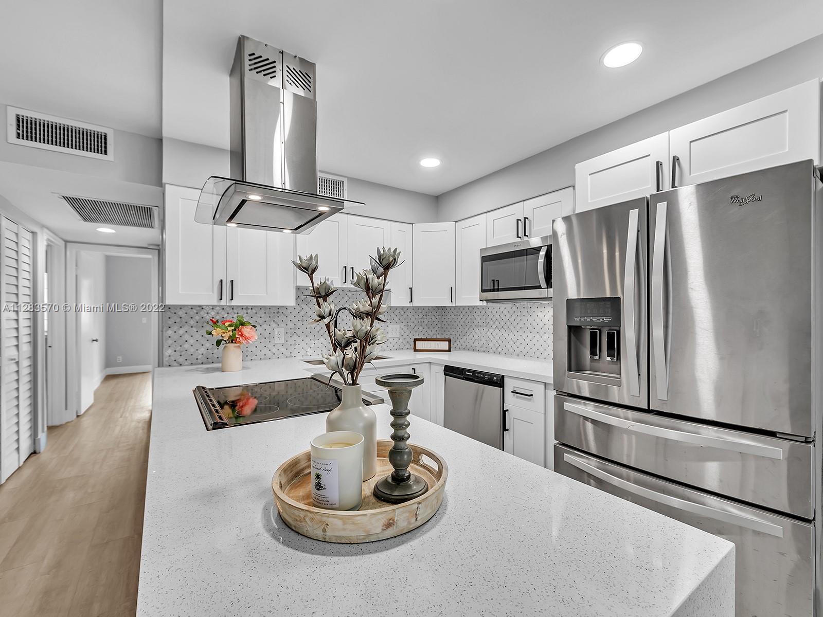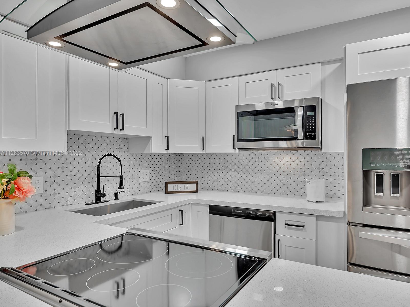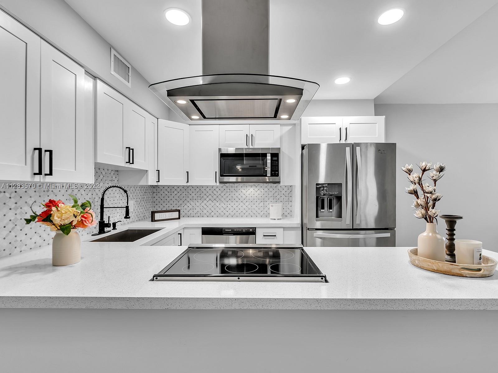 This gorgeous bright, modern, and completely remodel condo would welcome you upon entering the front door into a beautiful concept. 2 Bedrooms, 2 Bathrooms. This model offers a relaxing welcoming entrance from the kitchen into the living/dining room. The kitchen has been tastefully upgraded with soft closing white cabinets, white quartz, modern backsplash, stain-steel appliances, laminate waterproof flooring, smooth walls and ceiling finishes, and modern bathrooms. Be part of the Best 55+ community in the area offering resort-style amenities with numerous options to stay socially and physically active. Come and enjoy endlessly resort amenities!