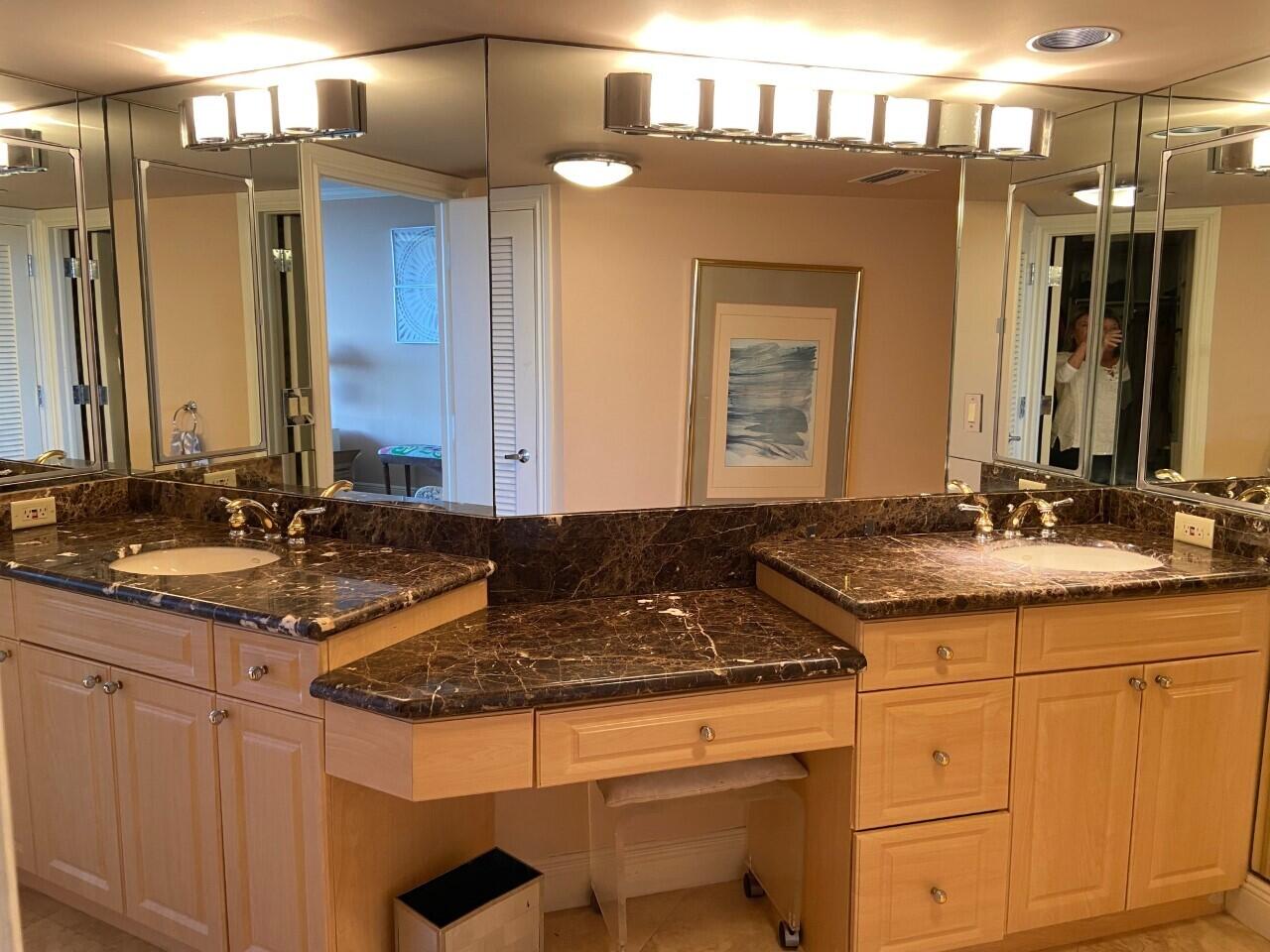 Open your front door and look directly South down the Intracoastal Waterway towards Palm Beach. Enjoy Expansive Ocean and Intracoastal views. Floor to Ceiling Windows with Amazing Views from all rooms. Wonderful Covered Balconies to watch the Boats go by. All rooms are very spacious in this 2/2.5 with over 2700 of Living Area. This Unit has two Spacious Bedrooms with Ensuite Baths located on opposite ends of the Condo. Main Bedroom with Covered Porch Spectacular Views has Lg Private Bath Double Vanity Lg Walk in Shower Soaking Tub and Two Walk-in Closets. Second Spacious Bedroom has Walk-in Closet and Lg Bath. Beautiful Building surrounded by Water Spectacular Mega Yacht Marina Restaurant Two Mile Waterfront Walking Path. Building has 24/7 Concierge and Manned Gatehouse.