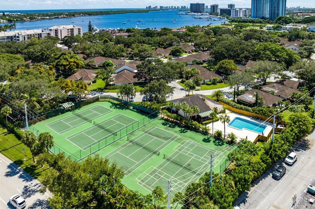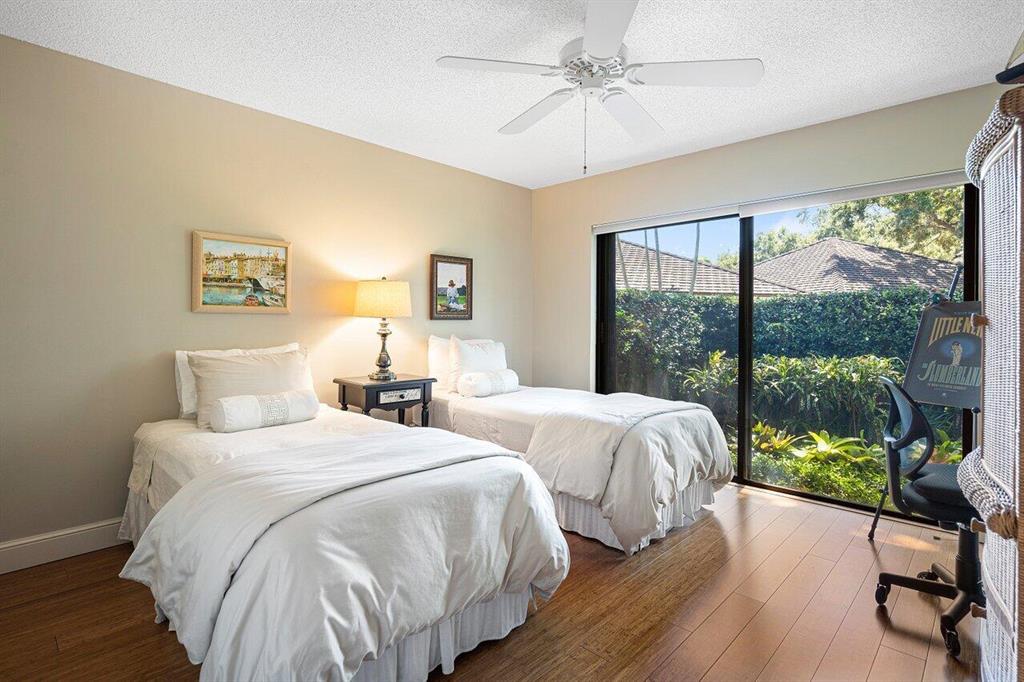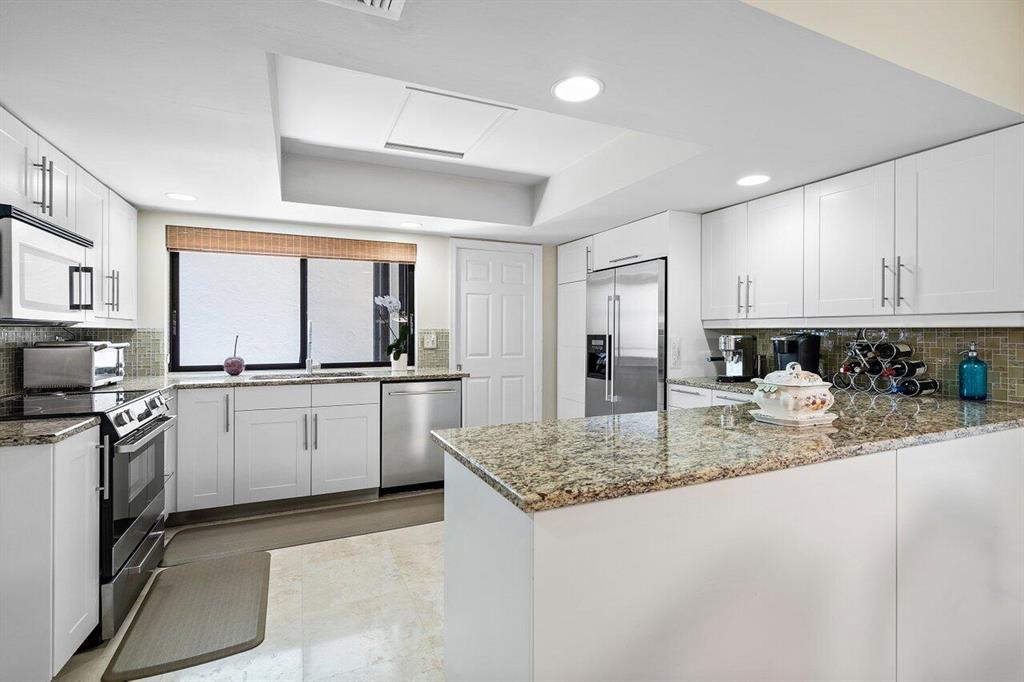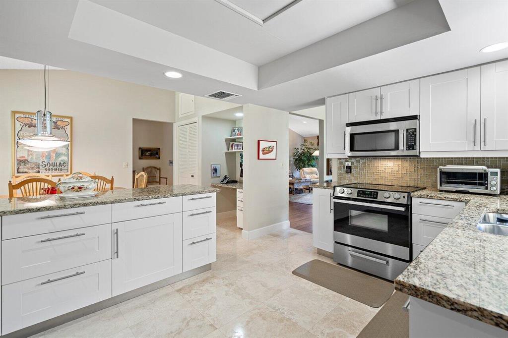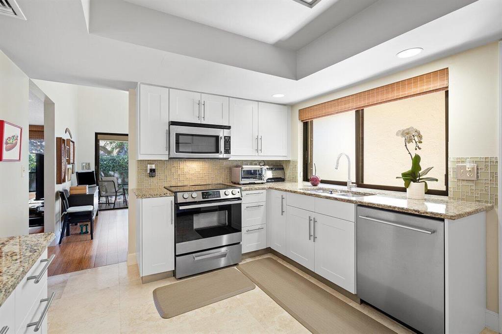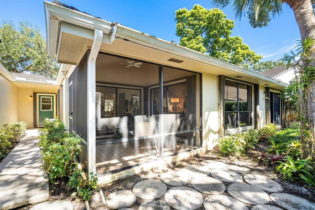 Elegantly updated 2/2 villa located on a quiet cul-de-sac w relaxing private garden. This light filled home features vaulted ceilings w lots of sliding glass. Updated kitchen w white cabinetry, glass backsplash, granite counters & stainless appliances. The main living area is open w bamboo flooring. The home has a spacious master, w walk-in closets and en-suite bathroom, double vanity & frameless glass shower. The 2nd guest suite has its own updated bathroom. The property boasts a generator, storm shutters, and is move in ready!Twelve Oaks features clubhouse, 4 pools, tennis & pickleball courts, & a marina w boat slips for sale/lease. Association maintains landscaping, exterior painting, and roof.