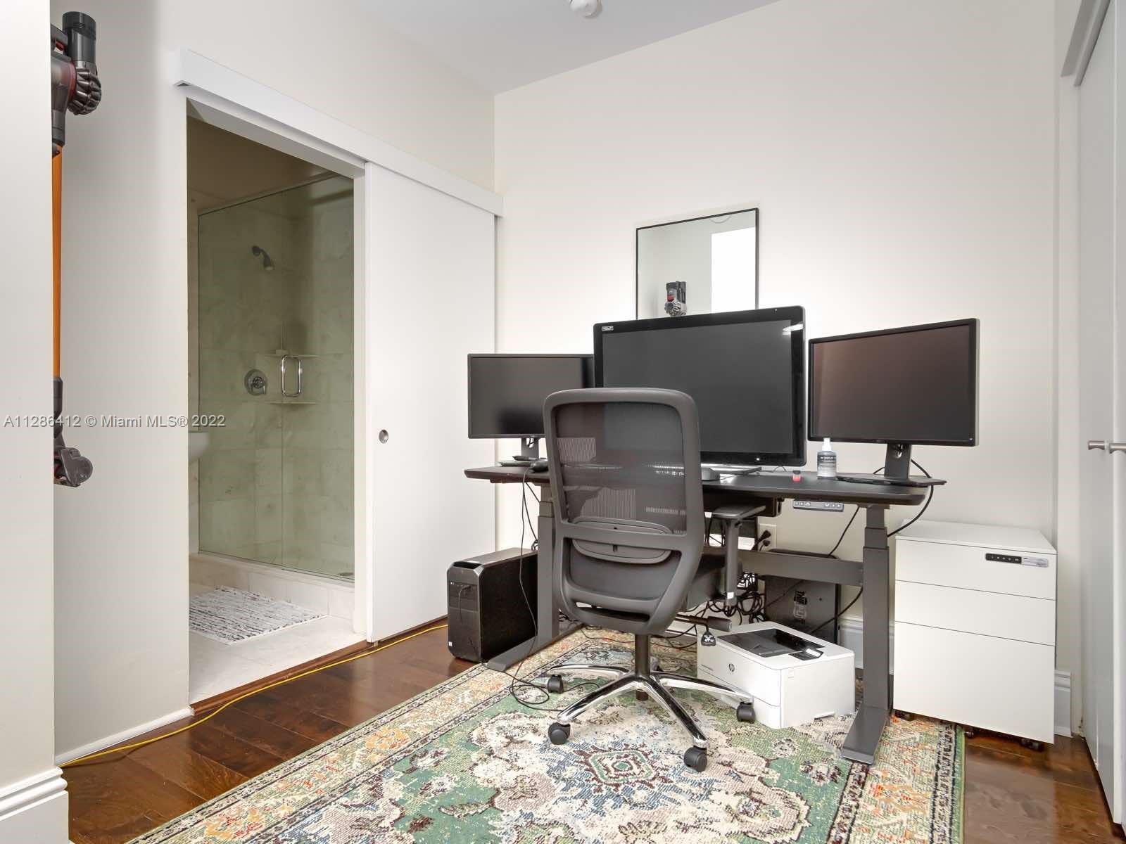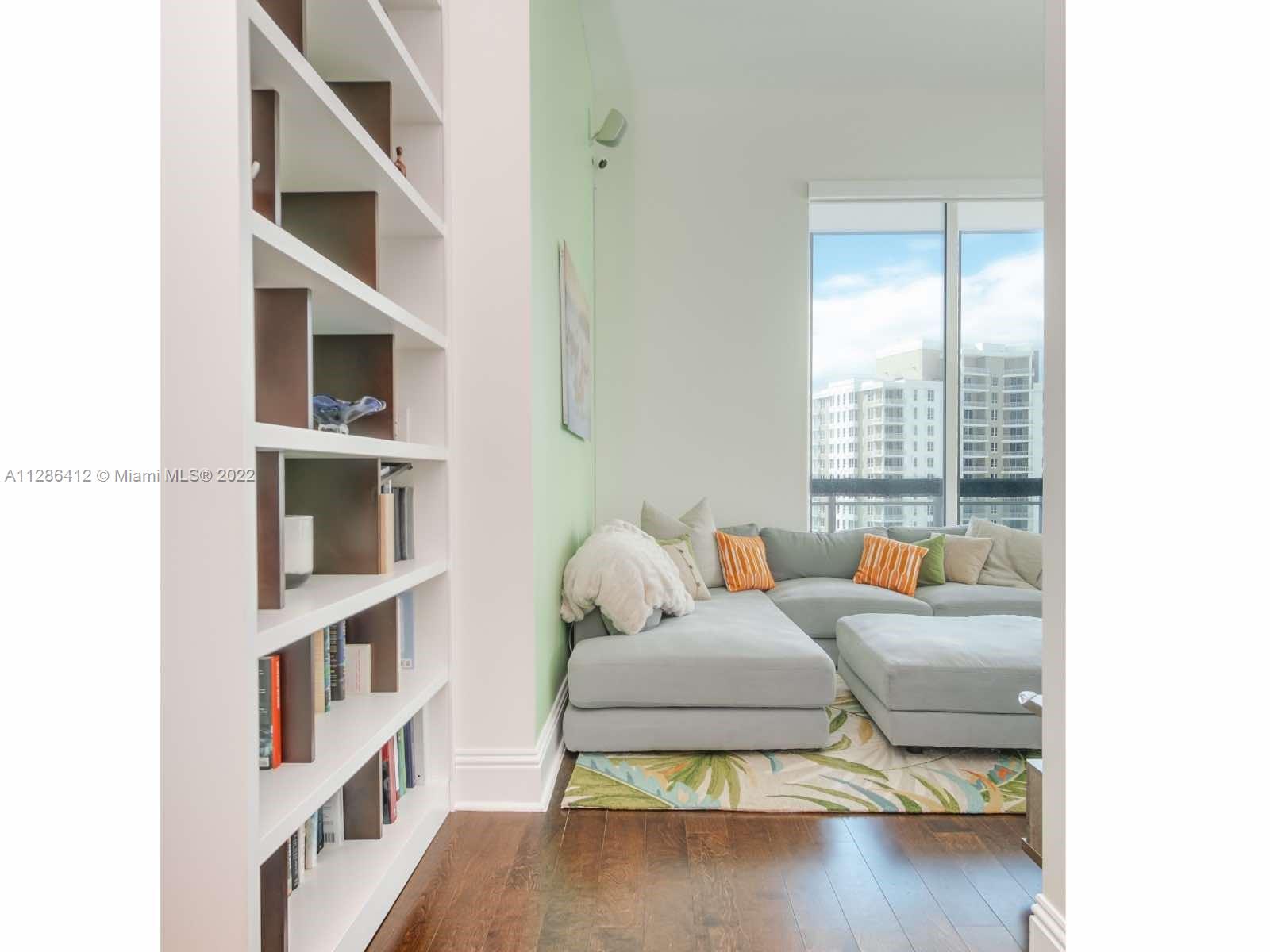 Enjoy dramatic city and bay views from this bright corner residence located on a gated exclusive island in the heart of Brickell. The residence features 3 bedrooms, 4.5 baths and a home office/den spanning 2,631 sf / 244.43 m² of interior space and 4 generous balconies, 12 ft ceilings, hardwood floors, an open kitchen with marble floors and top of the line Miele, and sub zero appliances, storage space on the floor of the residence and 2 assigned parking spaces. The full service building features pool, spa, fitness center, tennis, basketball and racquetball courts, 24 hour valet, concierge and security. You are a few steps from the Island market, restaurants and much more. This spacious condo feels like a home in the sky. It's a must see!