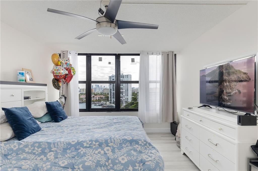 Huge 2 beds/2baths corner unit offers wide plank vinal flooring though out. Windows & sliding glass door are ESW Prestige High Impact Windows. Over looks the tennis courts & the bay/boat docks. Kitchen has S/S appliances. Amenities include Tennis Courts, fitness center 2 heated pools, 24 hr security in the lobby, courtesy bus, barbecue area & valet parking. Close to the beach, Gulfstream casino and the Aventura Mall. Can be rented right away.