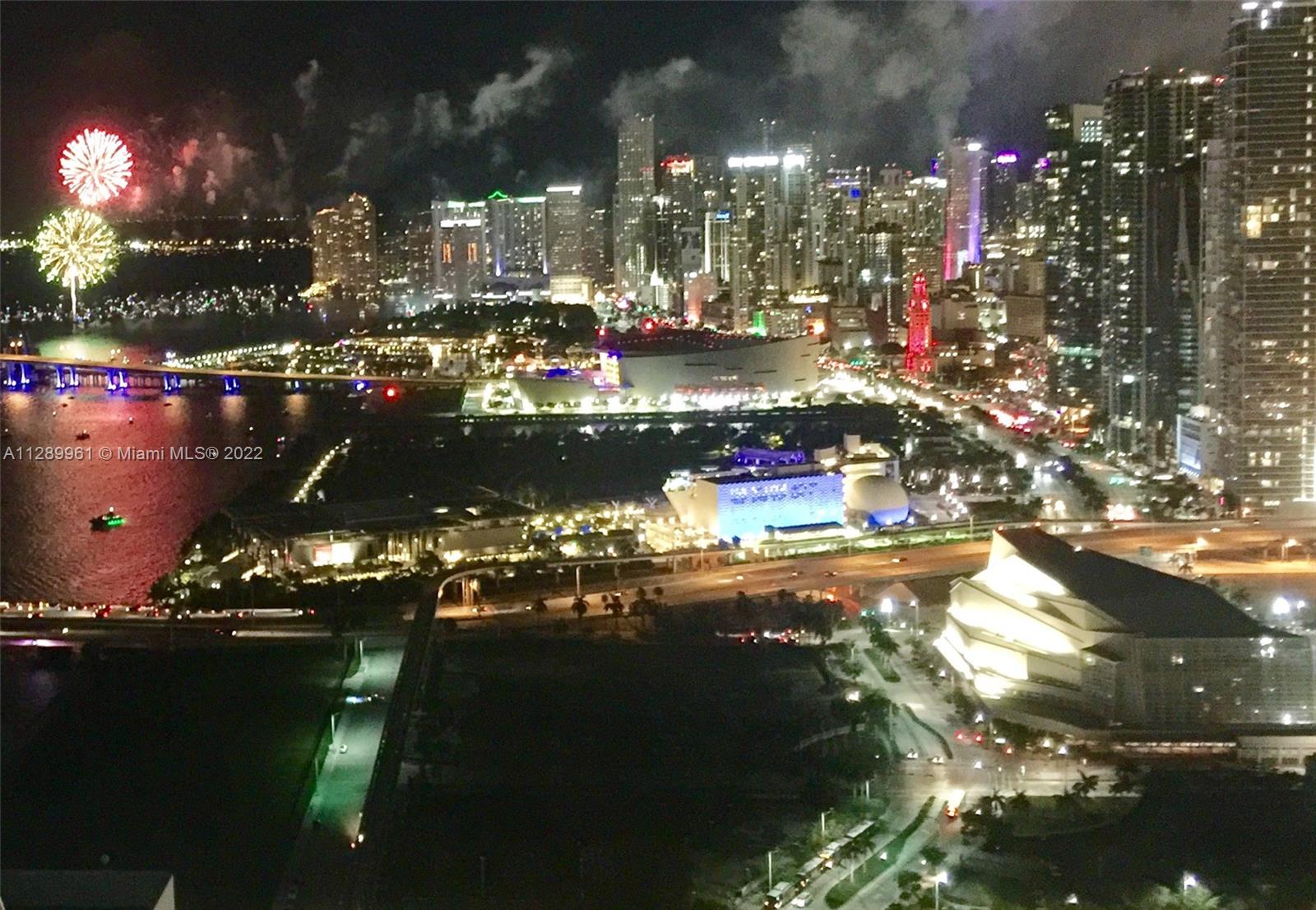 This 55th floor studio unit offers floor to ceiling windows and unobstructed breathtaking views of Biscayne Bay, Miami Beach and Downtown Miami. Its 83 sq. ft. / 7.7 m² balcony is perfect for your relaxing pleasure and makes this unit feel even larger than its listed square footage. Opera Tower is a prestigious building with resort-style amenities and great location, just across the street from the 112,200 Sq.Ft Margaret Pace Park and minutes away from Downtown, Midtown, theaters, museums, marinas, fresh market, elegant shopping, movie theaters, five stars dining, etc. This unit has one parking space plus valet parking. Short term (30 days) leases available.