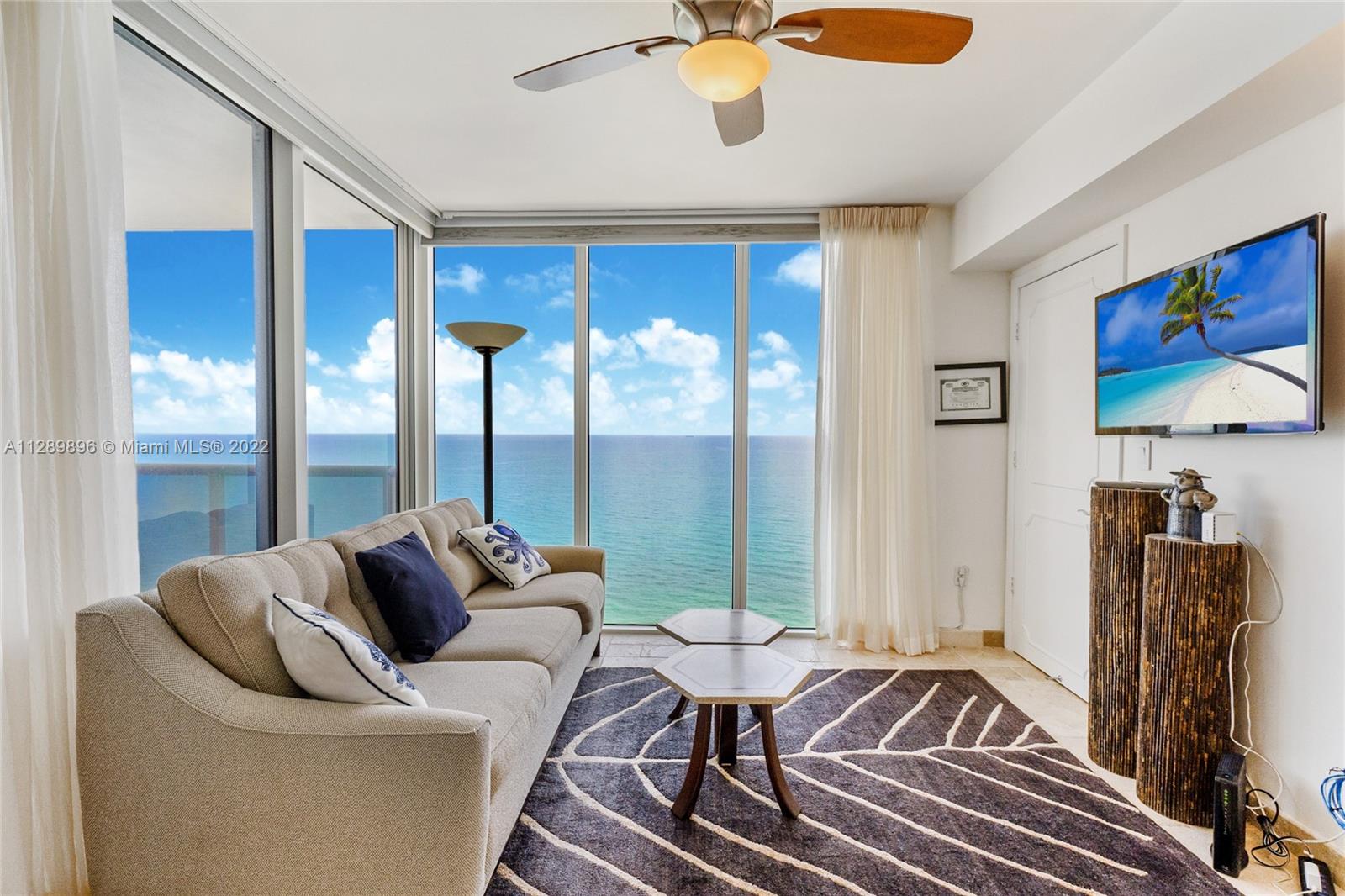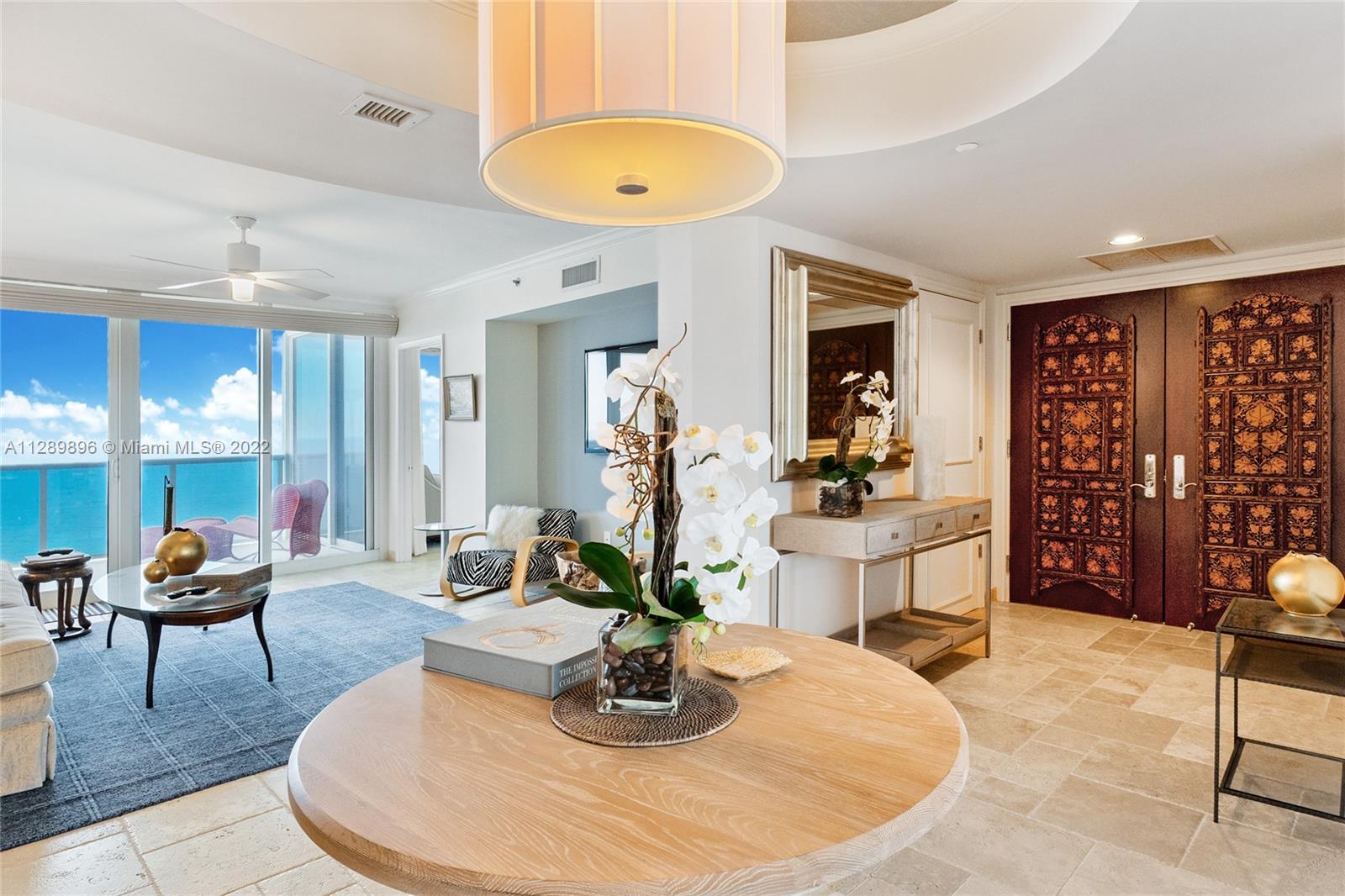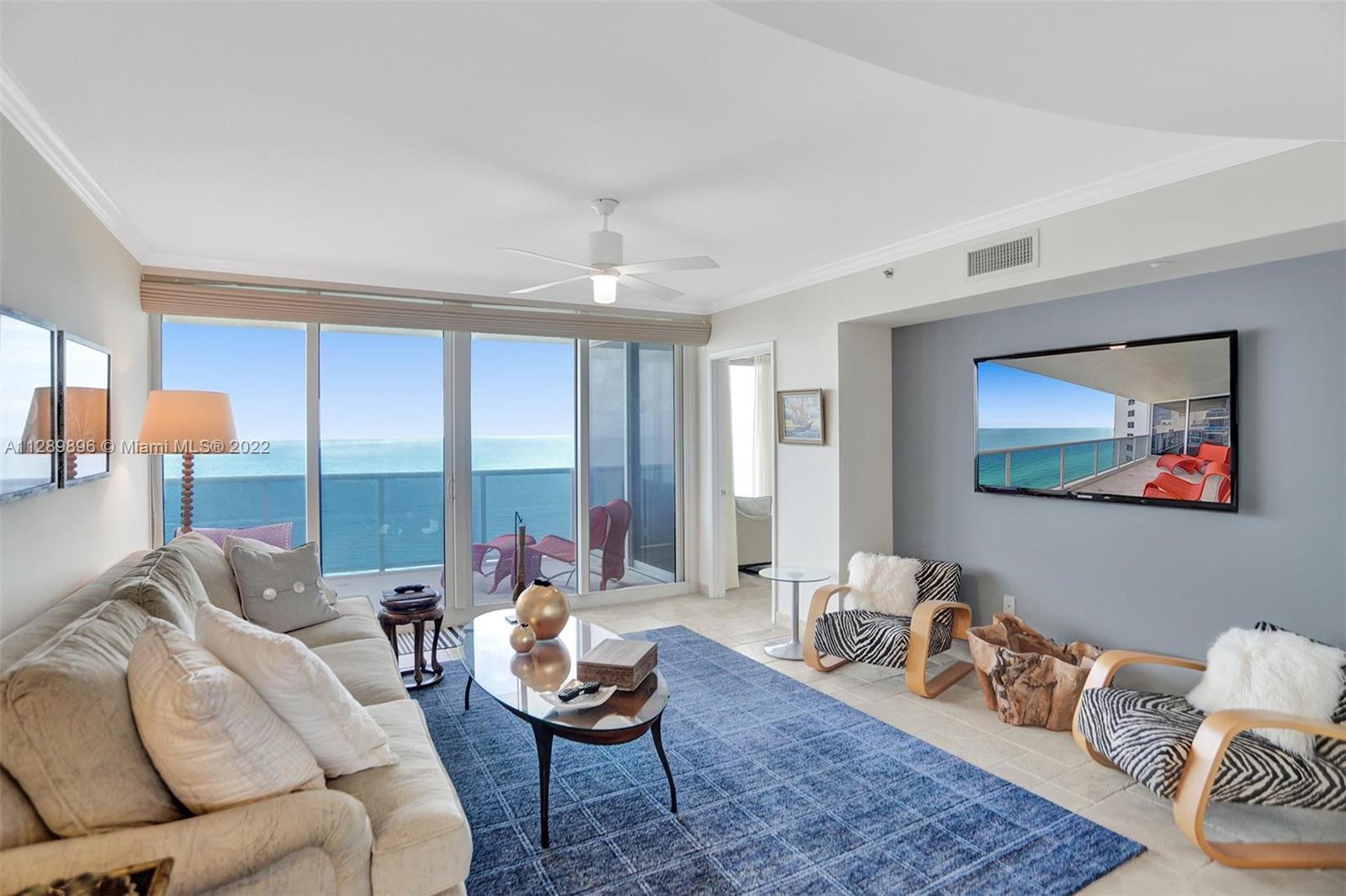 Ocean Two Condo, Sunny Isles Beach spacious 3 bed/ 4.5 bath, 2440 sq ft interior flow through unit with direct ocean & city views. Spacious sunrise and sunset balconies. Foyer Entry, Formal Dining Room, Eat in Kitchen, Marble & Wood flooring, Private elevator entrance, exterior private laundry room, large closets and plenty of storage. Building interior common areas renovated by Steven G. Amenities include 24 hour front desk, valet and security. Heated pool and beach service, Two outdoor hot tubs, spa with steam and sauna. Two story gym, lifestyle center, massage & game room, children’s play room, two tennis courts, restaurant, dog park & conference room. Beachside cabana sold separately. Two assigned parking spaces and storage included. Pet friendly.Same day showings and Video Available