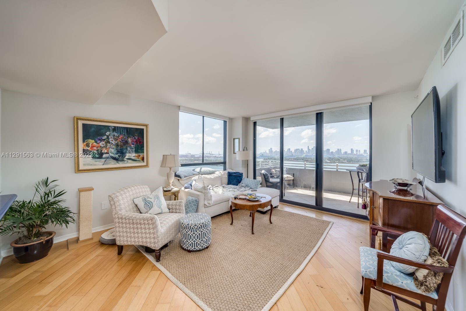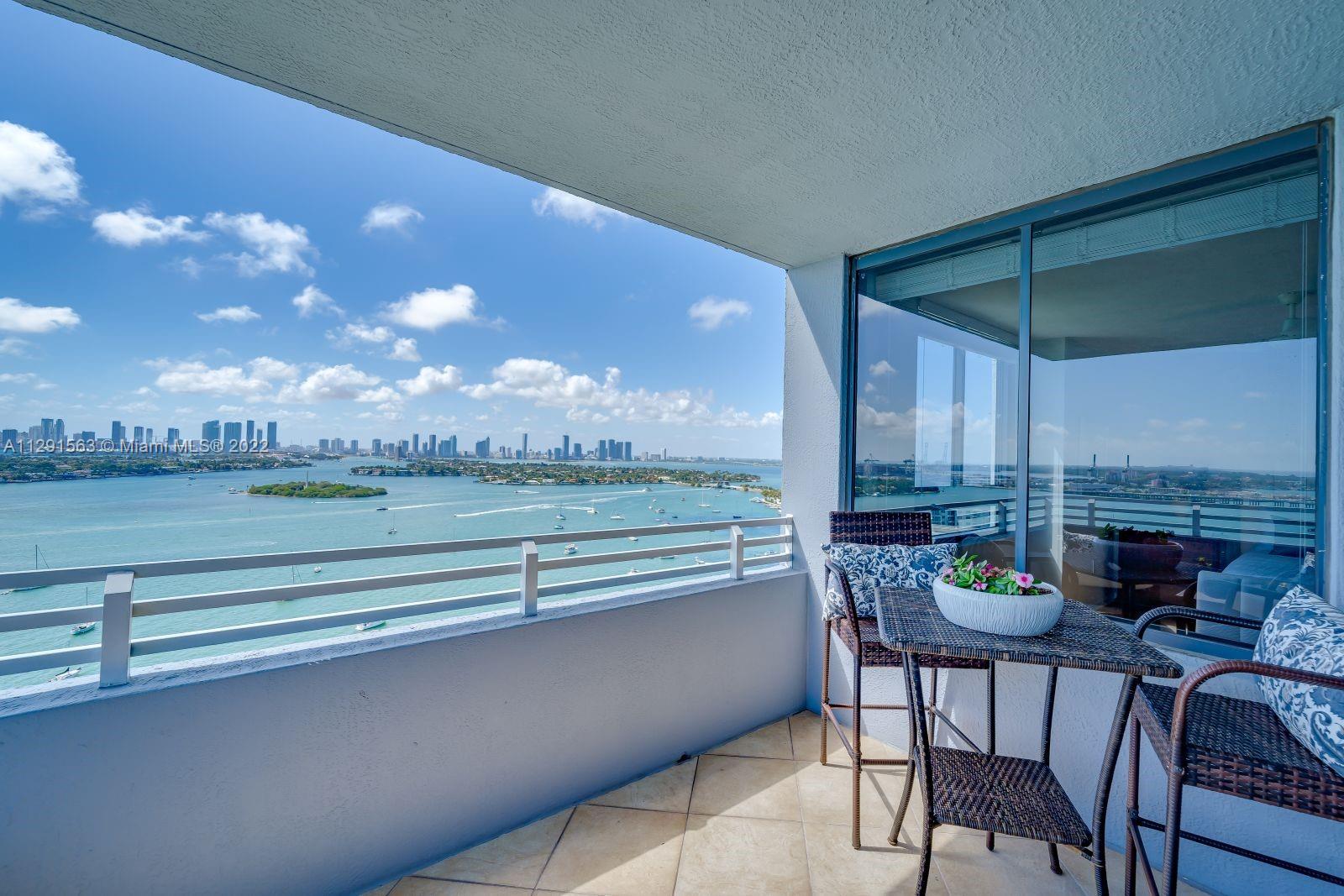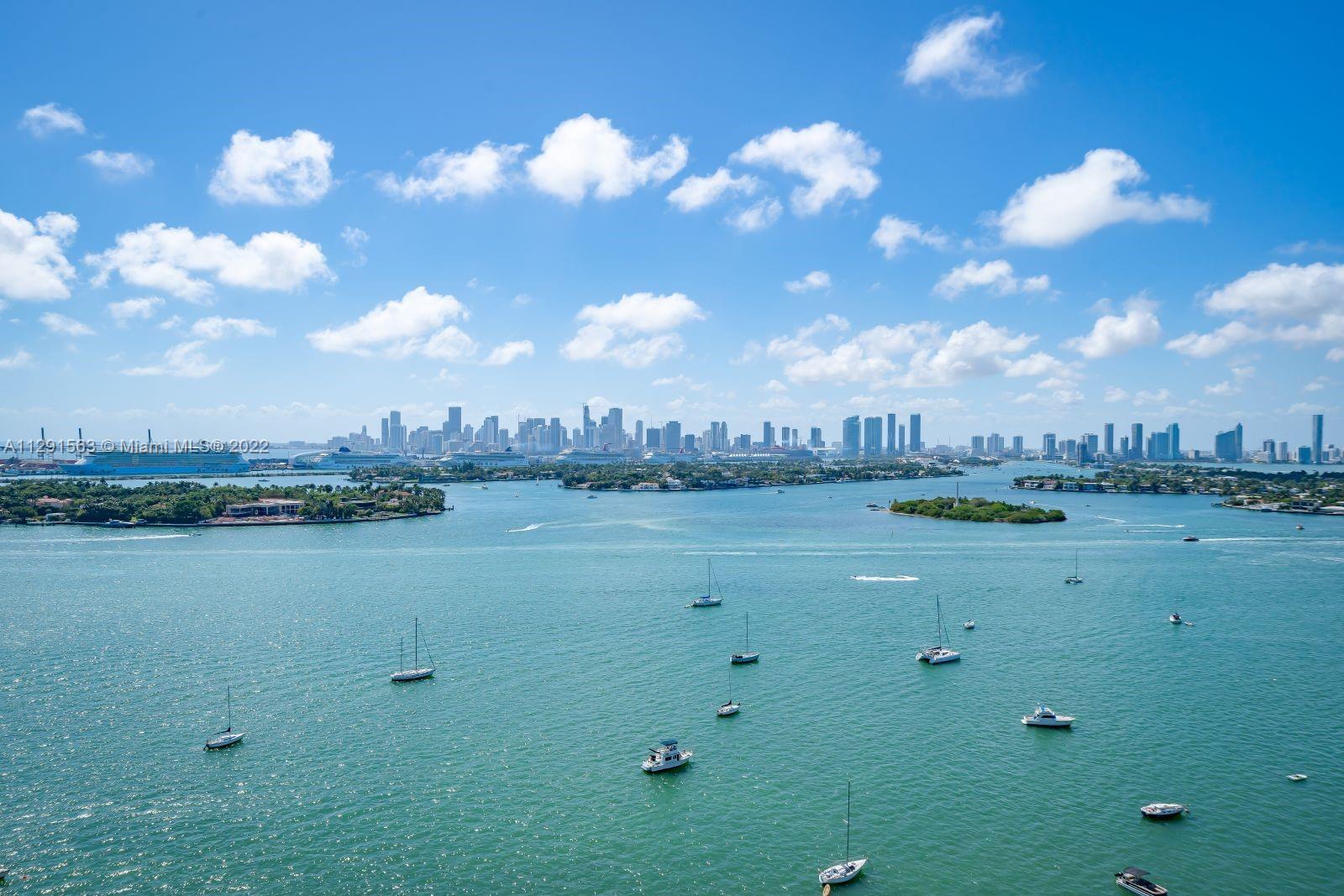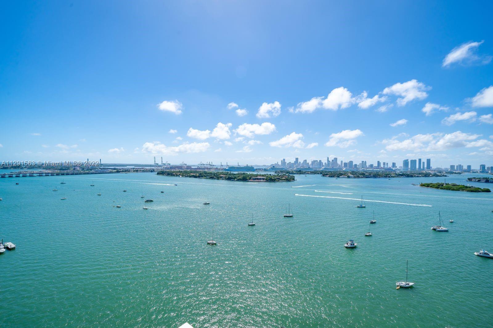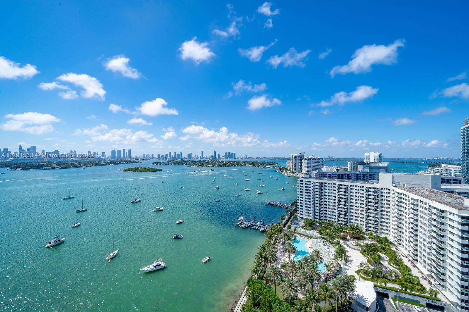 Spacious 2/2 corner unit with extraordinary city, bay, and ocean views. Breathtaking sunrises and sunsets from all rooms and spacious private balcony. Enjoy the resort lifestyle with bayfront pool, BBQ’s, sand volleyball, tennis, fitness center with yoga and cardio rooms, Spa/Hot Tub, newly renovated feng shui garden, renovated party room, business center, electric vehicle charging stations & convenience store. Onsite management, 24 hr. security and concierge, valet. The trendy West Ave neighborhood is close to SoBe's best restaurants, gyms, and shops. Minutes to the ocean, Lincoln Rd, and an International airport. One assigned-covered parking space. Full-size washer/dryer in unit. Cable & high-speed internet included in maintenance. Pet friendly.