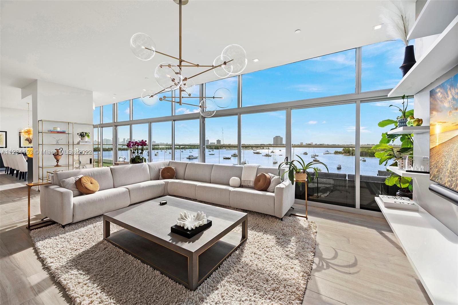 Rarely available, 4/3.5 corner, double-unit of 3,721 sq ft with amazing panoramic waterfront views in the idyllic islands of North Bay Village. Unit boasts open floor plan, with floor-to-ceiling and wall-to-wall impact glass windows and doors leading to an additional 350 sq ft of balcony overlooking the water. Impeccably and elegantly designed; no expense was spared. Features: large bedrooms (three en-suite) solid interior 8-ft doors, Miele and Wolf appliances, 10' kitchen island and high end lighting throughout. Building amenities include 24-hour security entrance, gated parking, private waterfront boardwalk with BBQ area, lush rooftop heated pool, and well-equipped fitness center. Four parking spaces, big dogs welcome. This peaceful waterfront home enjoys amazing sunsets.