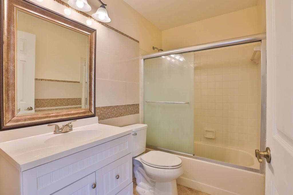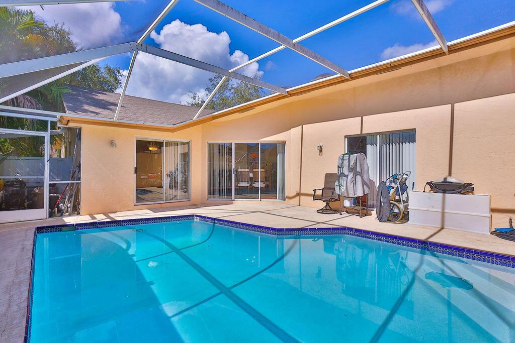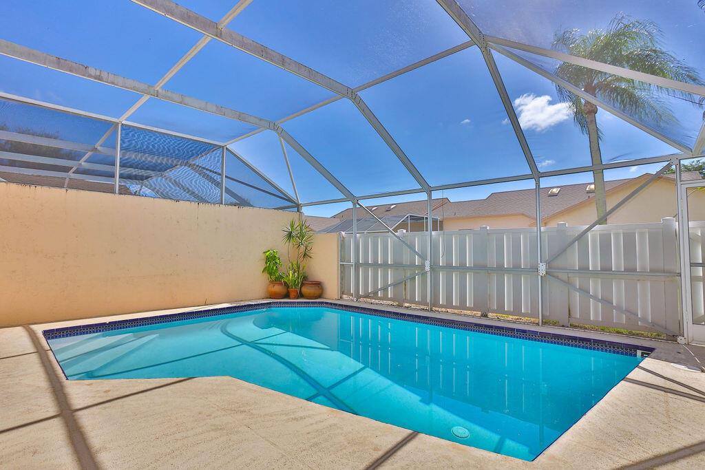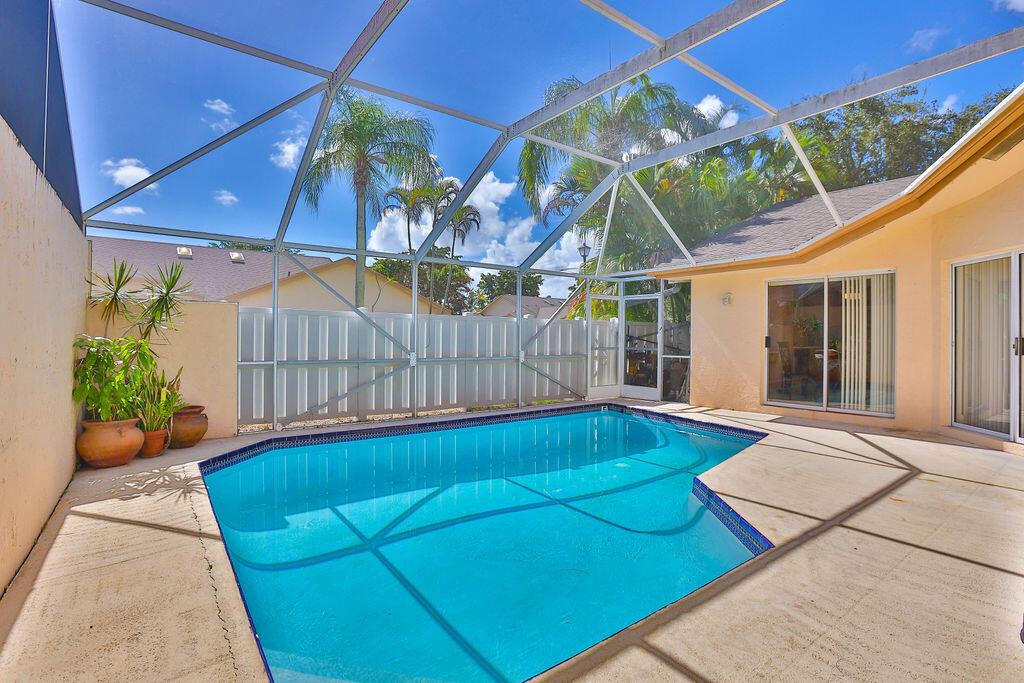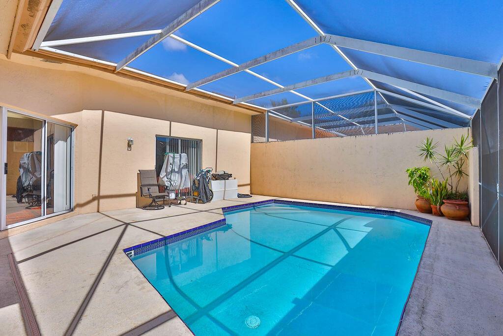WOW!! This 3BR/2BA attached villa has its own pool! Light & bright, this home has vaulted ceilings. Huge, screened in patio with private pool, perfect for relaxing, day/night. Boca Gardens has a low HOA which includes cable, roof & ext. maintenance. Amenities abound-clubhouse, 3 community pools, tennis, fitness, basketball & children's play area. Security patrol on premises. A-rated schools. Centrally located near shopping & restaurants including Boca's new Uptown Boca, & Town Center Mall. Easy access to major roadways, & short drive to ocean beaches. Come check out your own piece of paradise today!!