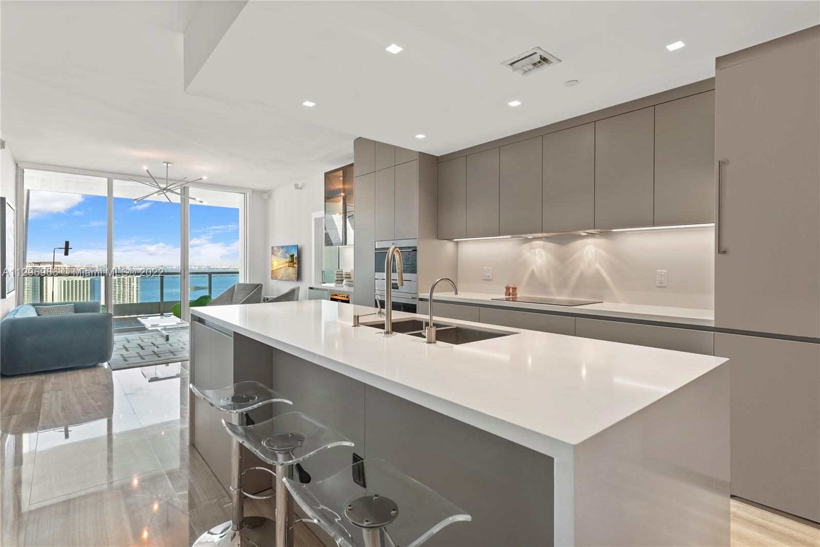 Stunning 2 Bed + Den, 3 Bath Condo at 900 Biscayne. Enjoy spectacular bay views from the nearly 400 SF balcony. This spacious unit has 1450 SF & is fully renovated with a spectacular kitchen featuring custom Italkraft cabinetry, quartz counters, & Subzero/Wolf Appliances, high-end marble floors throughout, designer lighting, & custom California Closets in both bedrooms. 900 Biscayne Bay is a 5-star luxury building with 24/7 doorman, security, valet, & concierge. Outdoor amenities include 2 pools, a hot tub & bbq area on large deck with lush tropical landscaping. Indoor amenities include a renovated fitness center, theatre, kids playroom, spa, business center, & party room. Best location across from Ferre Park, PAMM, and Frost Science with new retail opening in Miami World Center next door.