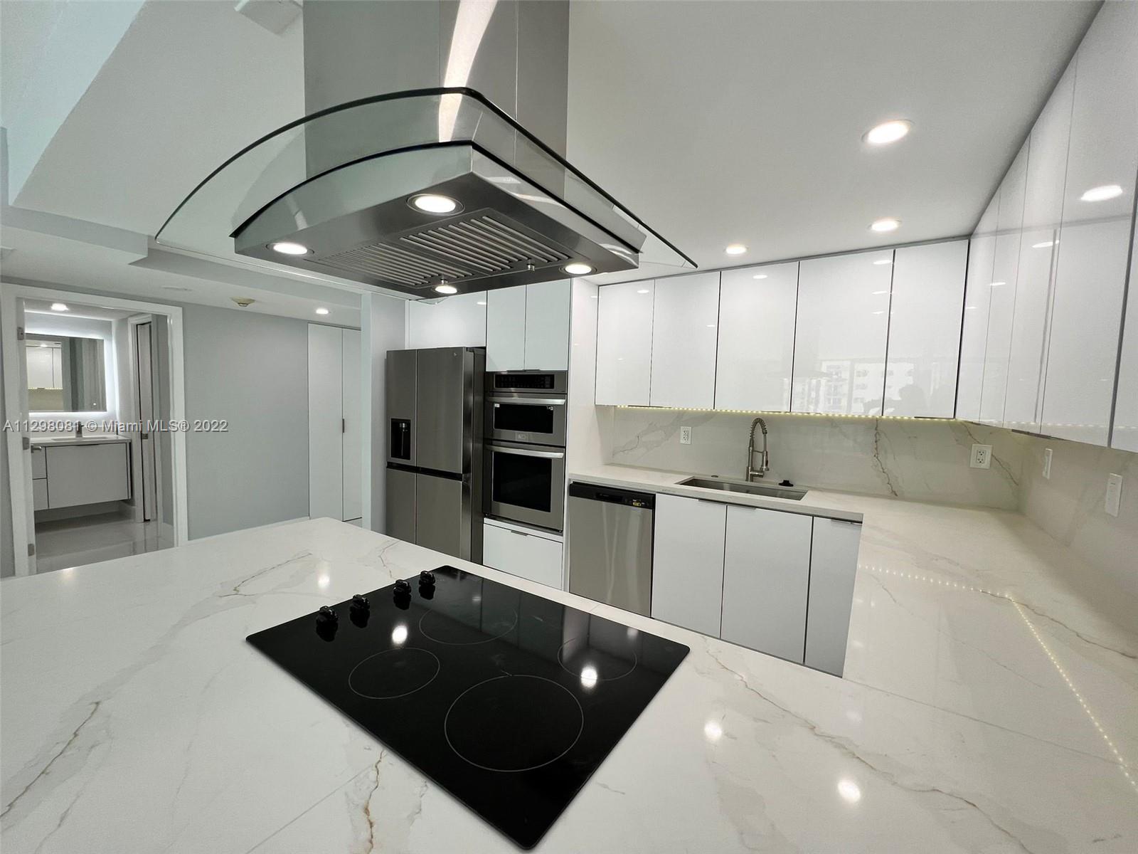 BRAND NEW CONTRUCTION!! Beautiful, completely renovated 2 bedroom 1 bathroom apartment. Alaskan white porcelain floors with marble shower, marble kitchen backsplash & marble L-shaped kitchen counter. New appliances throughout entire unit with hidden kitchen cabinet LED lighting & Living room Soffit lighting. Bathroom vanity mirror LED lighting with subdivision between vanity and shower in bathroom. 4 whole closets in entire apartment. (1 in each bedroom, 1 in bathroom, & 1 in entrance). Located in Sunny Isles with intercoastal views. For showings please call or text listing agents with 24 hr notice.