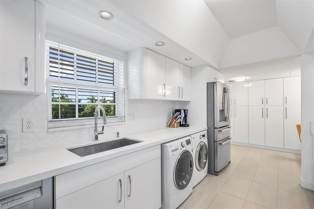 Beautifully renovated with high quality craftsmanship and materials! Spacious 2 bedroom, 2 bathroom corner unit with a HUGE balcony overlooking the pool and lush grounds of Atlantic Cloisters! High 9' ceilings and very light, bright, open and airy throughout. All HURRICANE impact windows and sliders, light Italian porcelain tile flooring throughout, newly remodeled kitchen with high white gloss kitchen cabinets and a built in eating counter, stainless steel appliances, both bathrooms custom remodeled with a soaking tub in the master bathroom, new upgraded electrical panel, washer/dryer inside the unit, all new window treatments, carport parking, large private storage room, and a secured entry. Atlantic Cloisters is directly across the street from the Beach/Ocean (South Inlet Park) situated