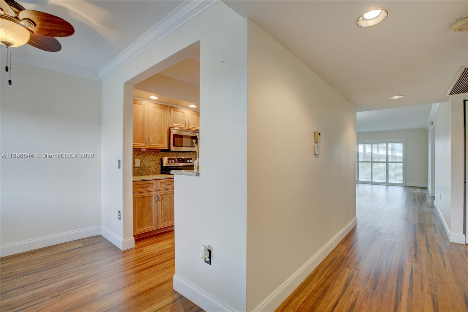 Impeccable upgraded two bedrooms with two bathroom unit featuring all hurricane impact windows! And a timeless concept of interior design which outlines the essentials of contemporary style. State-of-the-art chef's kitchen with recessed lighting. Which has been meticulously upgraded with modern natural oak shaker cabinetry. Sleek granite countertops and backsplash with an elegant stone design. Maytag manufactured stainless steel appliances. Glass shower doors were installed in both bathroom showers. Remodeled using durable high-end material. Crown molding with a knocked-down textured ceiling. A breathtaking panoramic view of the neatly manicured landscaping, tennis court, and tranquil lake. Feel secluded and at peace with complete privacy on the top floor.