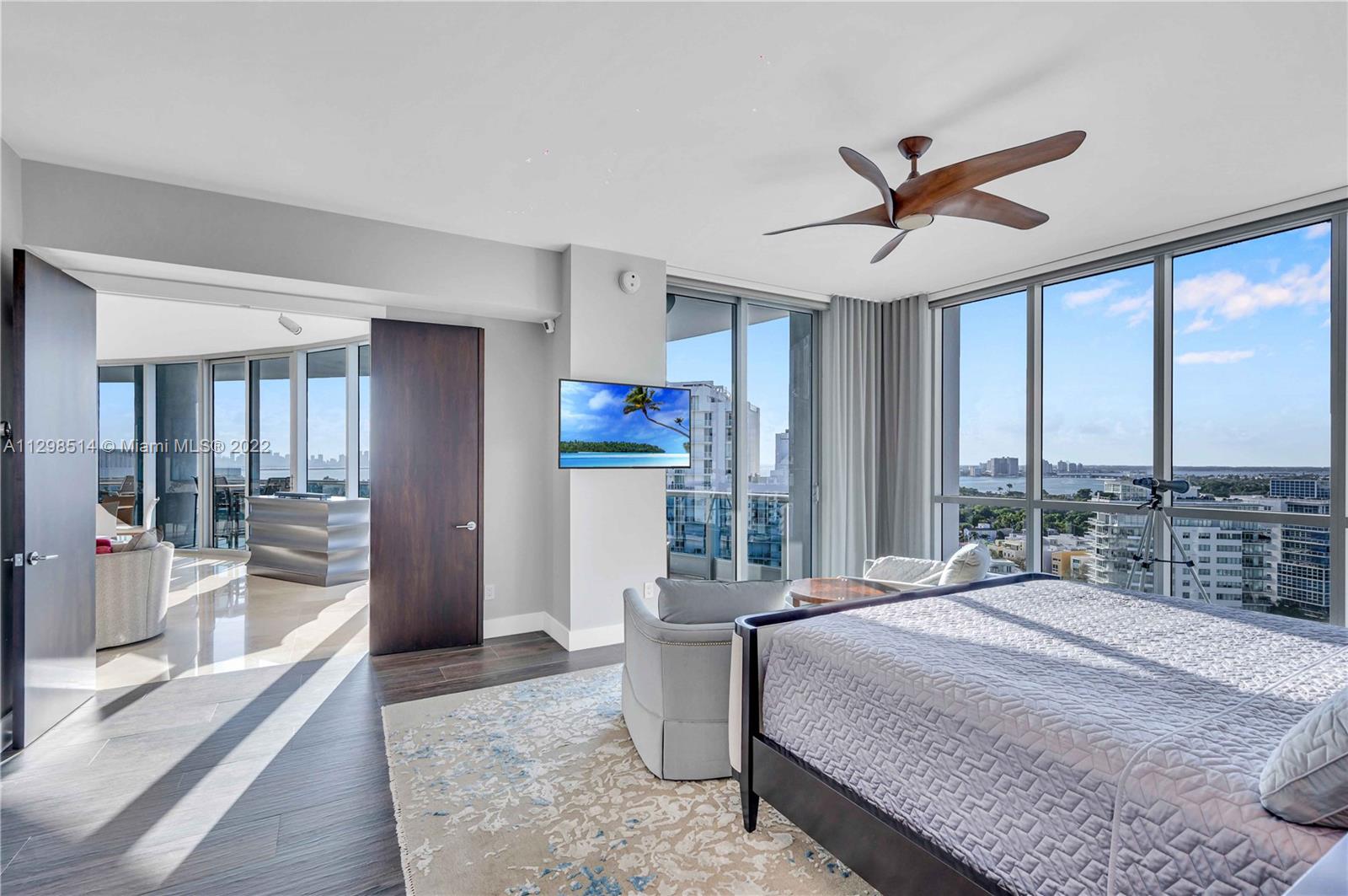 An absolute must see! Breathtaking & expansive water, city, & skyline views greet you upon entering this fully remodeled, turnkey furnished unit. No expense was spared. High up on the 17th flr, the view clears other buildings so the line of sight is endless. The price inclds the furniture & most of the artwork. All the closets are built out; there are 2 full master bathrooms, 1 full bath in the 2 nd bedroom, & a separate half bath. Private elevator foyer. All new appliances, incld an oversized wine cooler & washer/dryer in the laundry room. 5 star oceanfront resort living in a gated building w/ guardhouse, concierge, doormen, & valet parking. Pet friendly, pool, tennis courts, beach service, & a large fitness center (including Peloton stations) & spa.