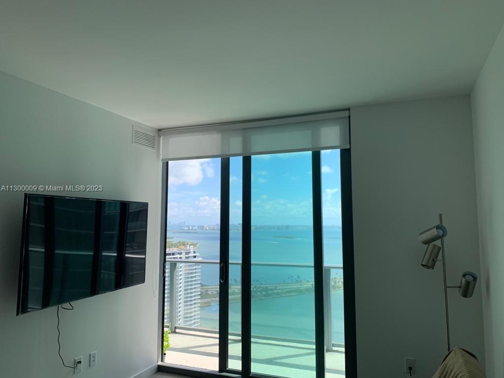 INVESTMENT OPPORTUNITY!!! A stunning furnished apartment with an amazing water view of South Beach from the 32nd floor is ready to move in! Brand new Building at Paraiso Bayviews with direct bay and water view with 1 bedroom, 1.5 Baths, walking closet, no carpet, washer, and dryer in the unit. Master suite with large glass-enclosed shower. Italian Design Kitchen with bosh appliances, full services building with a rooftop pool on 46th floor, the second pool on the 5th floor plus, spa, sauna, state of art gym, kids' room, social room with billiard and projection tv screen. One assigned parking space, and valet. Huge balcony. Shops and restaurants within walking distance. It can be rented for a short term (min 30 days), great as an investment property or vacation home.