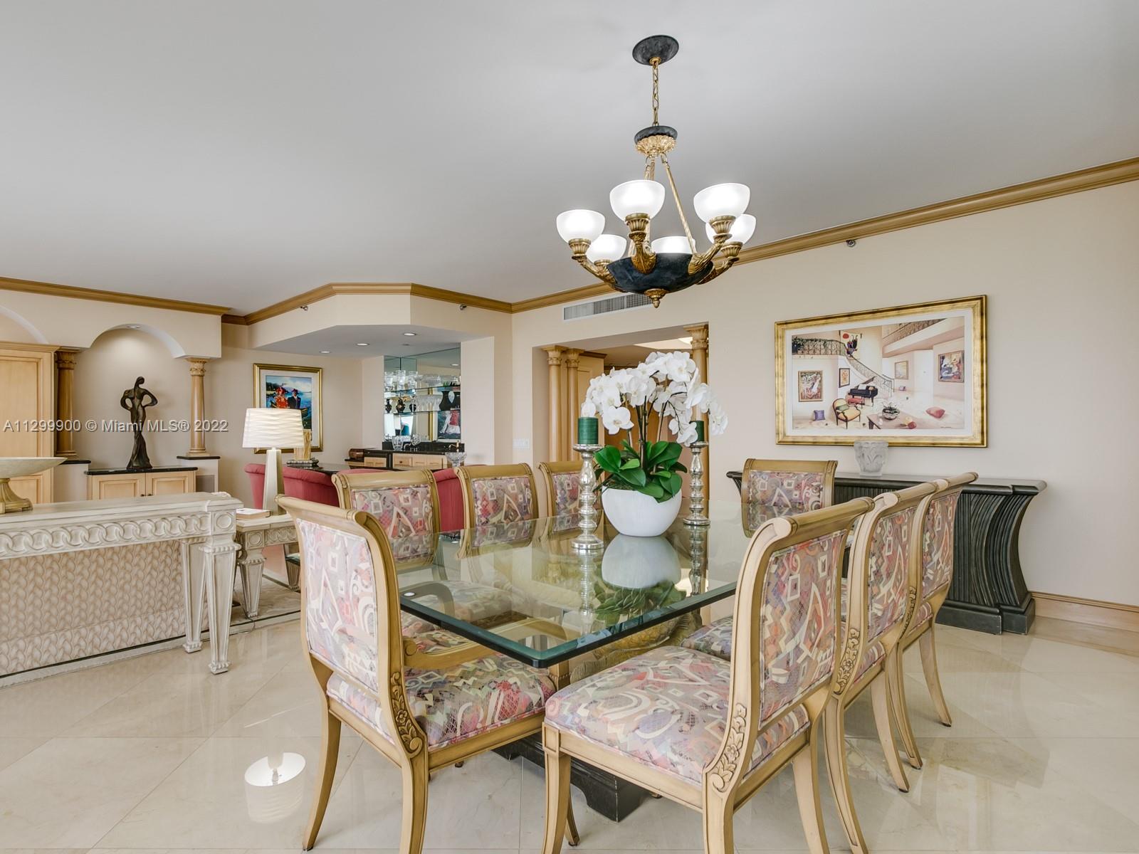 DIRECT OCEAN, INTRACOASTAL & MARINA VIEWS FROM THIS SOPHISTICATED RESIDENCE. FULL EAST TO WEST EXPOSURES WITH ALMOST 3000 SQUARE FEET OF LUXURY. THREE FULL BEDROOMS PLUS OFFICE WHICH CAN BE MADE INTO A FOURTH BEDROOM. LARGE MARBLE FLOORING COMPLIMENT THE QUALITY WOOD WORK, CROWN MOLDING'S & BUILT INS THROUGHOUT. GOURMET EAT IN KITCHEN HAS THERMADOR APPLIANCES, GRANITE SURFACES, LARGE PANTRY & ELECTRIC WINDOW TREATMENTS. FAMILY SIZE LIVING & DINING ROOM COMPLETE WITH CUSTOM MADE BAR FOR ENTERTAINING. TWO LARGE GUEST SUITES HAVE DIRECT ACCESS TO THE GLASS BALCONY FOR OPTIMAL SUNSET VIEWS. GUEST BATH HAS SEPARATE SOAKING TUB & SHOWER. THE PRIMARY BEDROOM GIVES YOU THE FEEL OF A 5 STAR HOTEL. 2 ORGANIZED WALK IN CLOSETS PLUS TWO FULL SPA LIKE BATHROOMS. THE POINT IS TRUE RESORT STYLE LIVING.