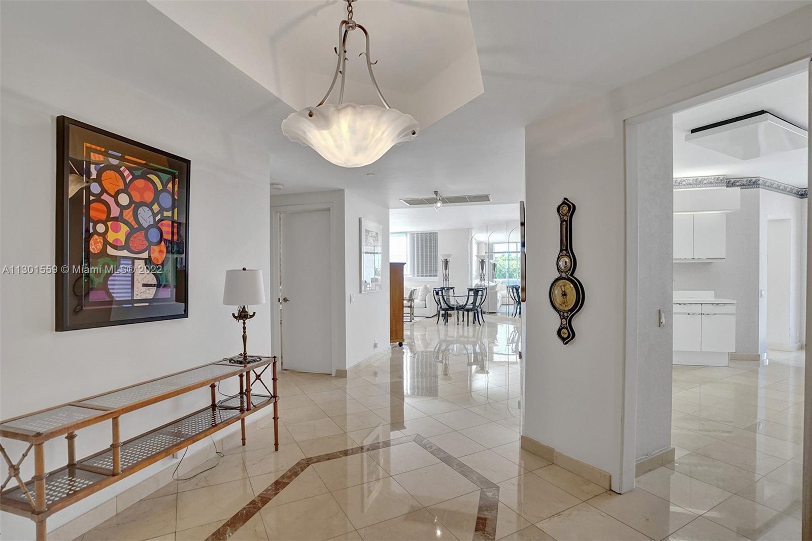 Lovely SE views of intracoastal glisten from your master bedroom in this two bedroom two and half bathroom Atlantic model apartment. Private elevator entry leads into this 2240 square foot interior while two exterior wrap around balconies provide additional space to enjoy the outdoors. Floor plan is attached. Marble floors throughout and carpet in both bedrooms. Huge laundry room. Only 4 apartments per floor. This is a wonderful opportunity to live in One Island Place, a unique peninsula surrounded by water on three sides near the exclusive Waterways community. Lushly landscaped, with TWO pools (morning and afternoon sun), state of the art fitness center and Two tennis courts with omni turf and tournament lighting. Snack bar is open weekends.