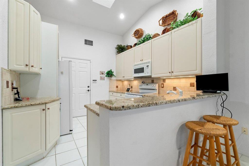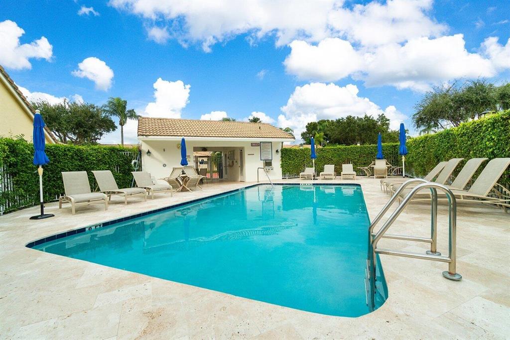 Beautiful, rarely available, gated, one story villa with garage in Central Boca. It has vaulted ceilings, 2 skylights & a great floorplan. Upgraded kitchen, floors, & screened in Patio that overlooks an extended rear patio. Meticulously mantained! Custom built-ins! The 3rd bedroom is currently a den (easy to convert.). Community Pool. Pet Friendly, 24hr manned security gate. Conveniently located to 95, downtown Boca & Delray. A rated schools!!