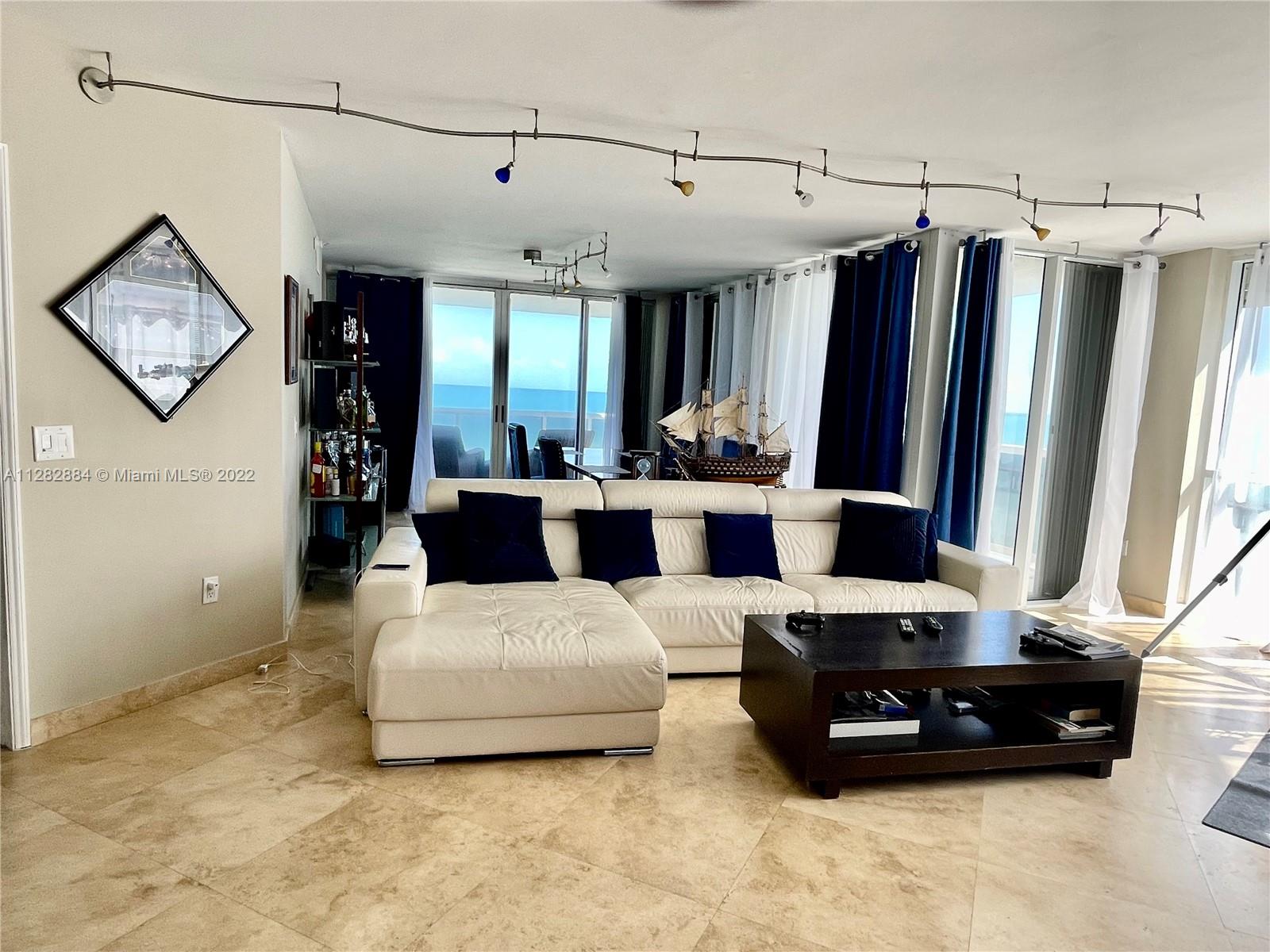 In the heart of Sunny Isles, enjoy resort-style living in large 3 bed/3 bath unit with desirable direct ocean & south-east view of intracoastal & city from large wraparound balcony. Marble floors throughout, floor-to-ceiling windows, fully furnished, tastefully decorated. Resort-style amenities include beach & pool service with lounges, umbrellas & towels, fitness center, jacuzzi, tennis court, 3 assigned parking spaces, oversized storage room, 24 hours security. Steps away from fishing pier w/waterfront restaurant. Walking distance to all shops, restaurants, entertainment and public transportation. Minutes to Aventura Mall, Gulfstream Casino & Bal Harbour Shops. Tenant occupied till end of March 2023.