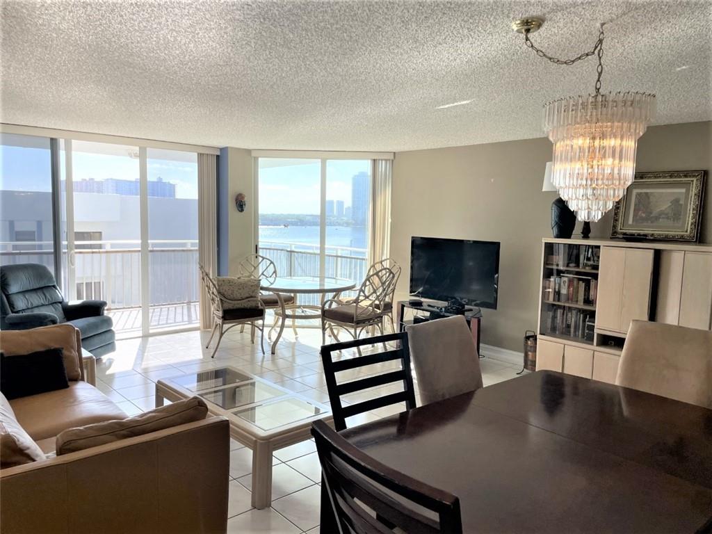 Furnished 2/2 corner unit with gorgeous multiple views from balconies and rooms and direct intercoastal. Tile flooring throughout, laundry room inside, very spacious with 2 full baths and master bathroom with tub and shower and walking closet in master bedroom. Great building, with pool and community room with stationary bike and treadmills. Can be rented right away, 30 days min 12 time a year.