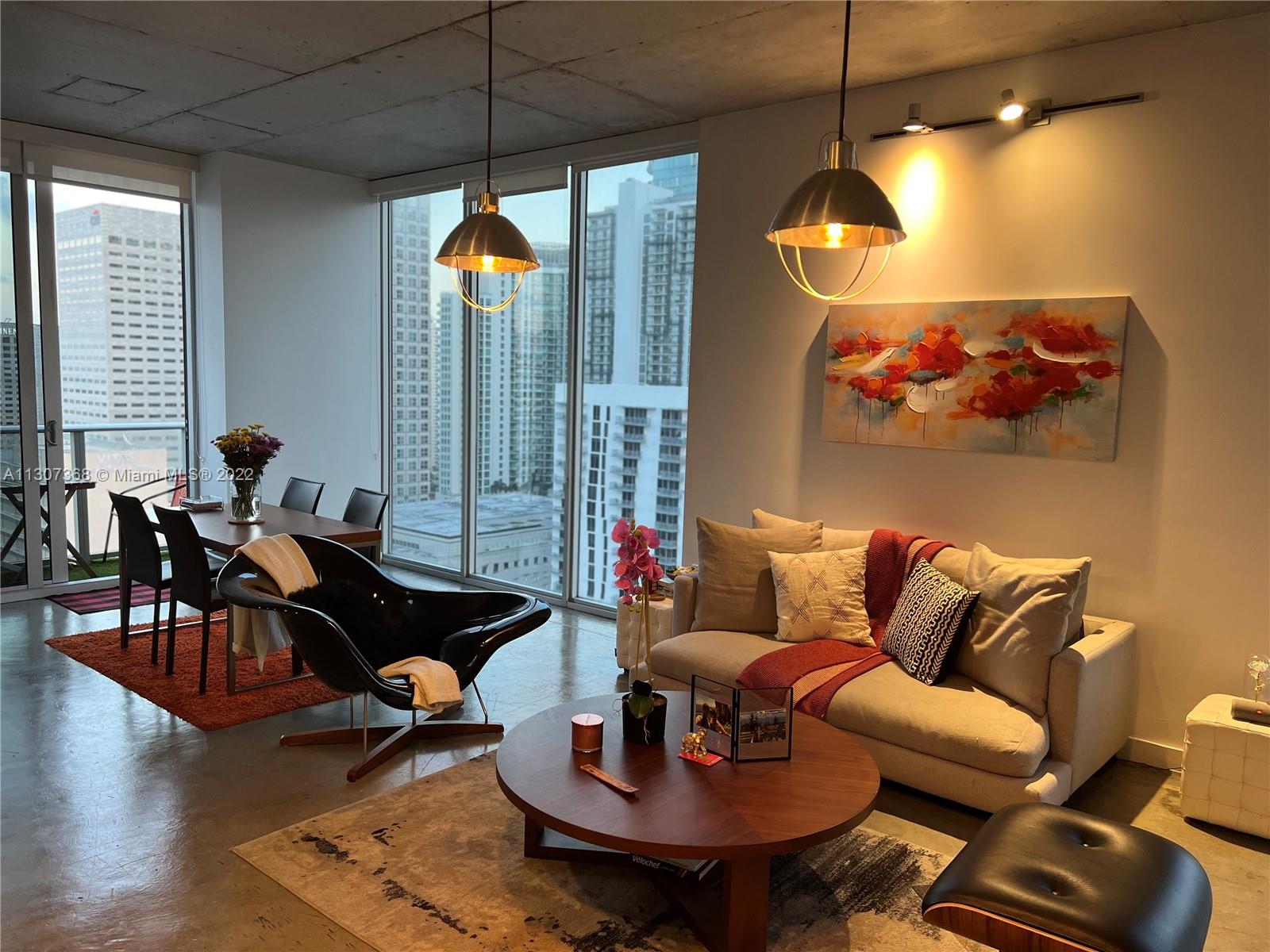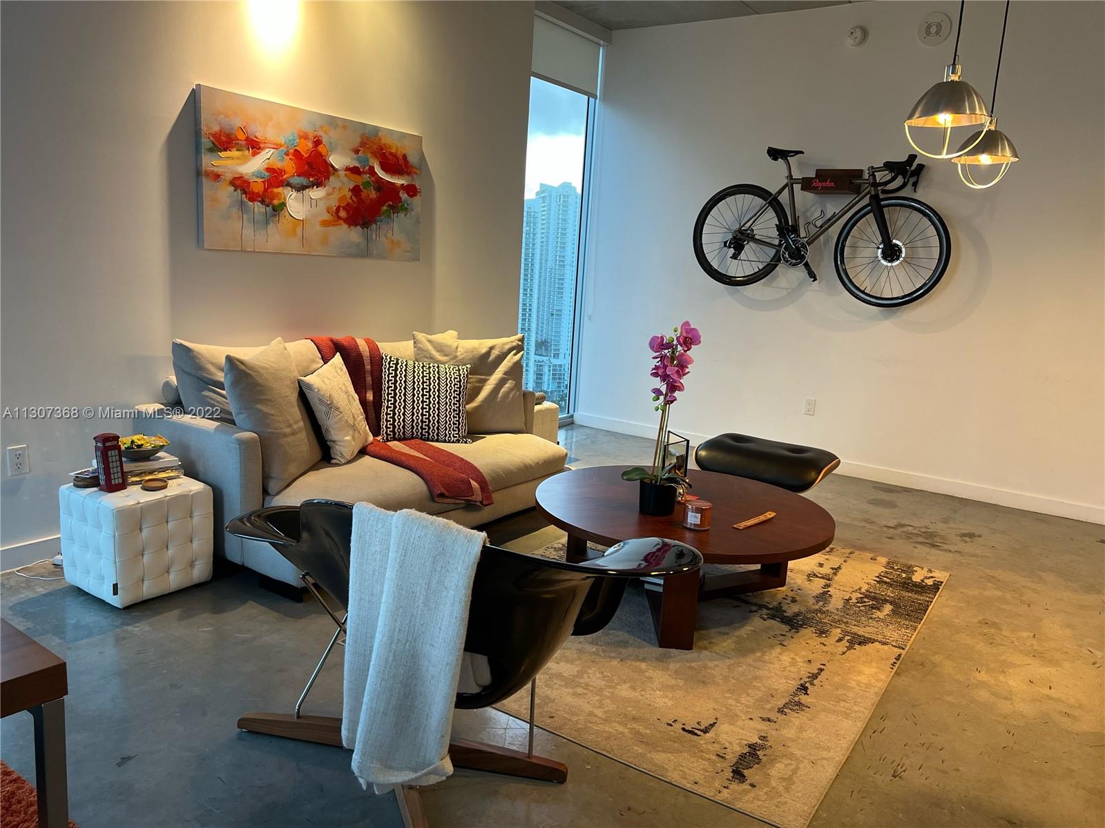 BEST LINE IN CENTRO BUILDING! GREAT WATER VIEW! 2/2 APARTMENT. Brickell city view also! this is a beautiful corner unit. Great furniture that could be negotiable. New York style building with beautiful Miami skyline views. High Ceiling, loft style, green building with common areas designed by Yves Behar. It is walking distance from several historical places in Downtown Miami. Pet friendly, two whole amenities floors, gym with Brickell area views, sauna, steam room and a rooftop pool with 360° views! Valet parking at building door and ample parking across the street!