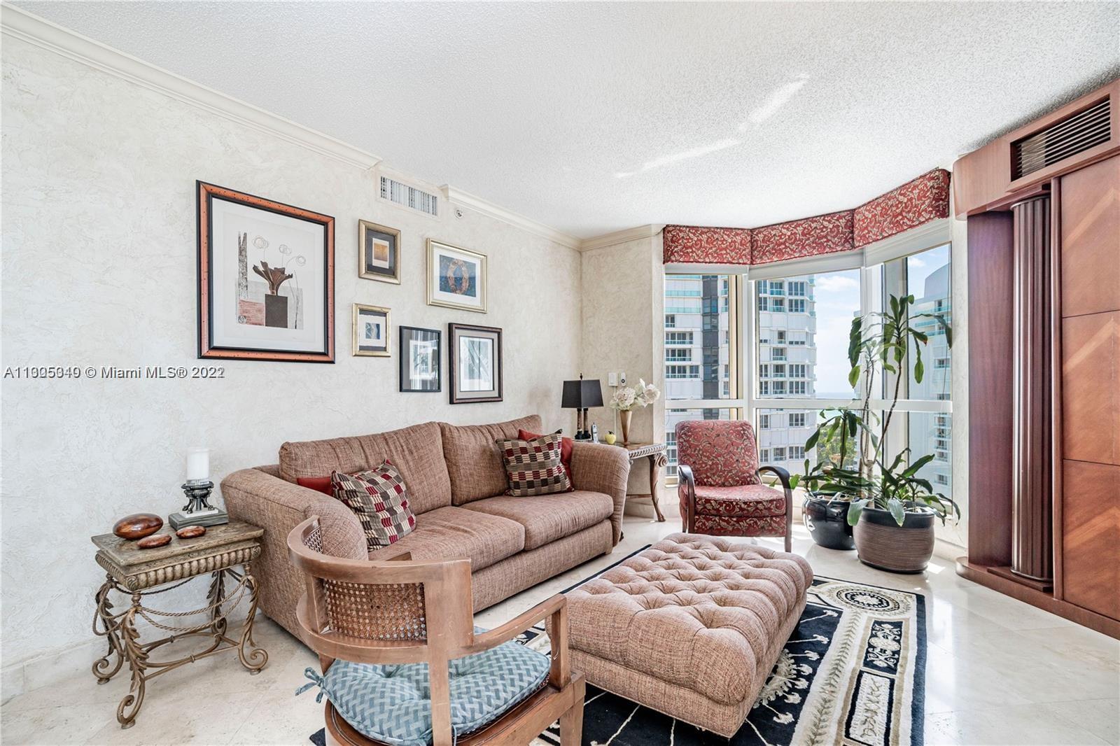 Reduced price! Beautiful condo for sale on the 25th floor with an amazing breathtaking views. This 2 bedrooms plus den, 2 bath condo is overlooking the bay area and marina. Den can be converted to 3rd bedroom. Comes fully furnished. Features marble floors, master bath with dual sinks, shower and jacuzzi style tub. Washer and dryer in unit. The North Tower at The Point has amenities including fitness center, renovated spa, gym, four tennis courts, three pools, BBQ area, 24hr valet and security. Its at a walking distance to the waterways shops, Aventura Mall, and minutes to Gulfstream Park for shopping, entertainment,& dining. Close to houses of worship, and A+ schools. Also available for lease at $4900 per month.