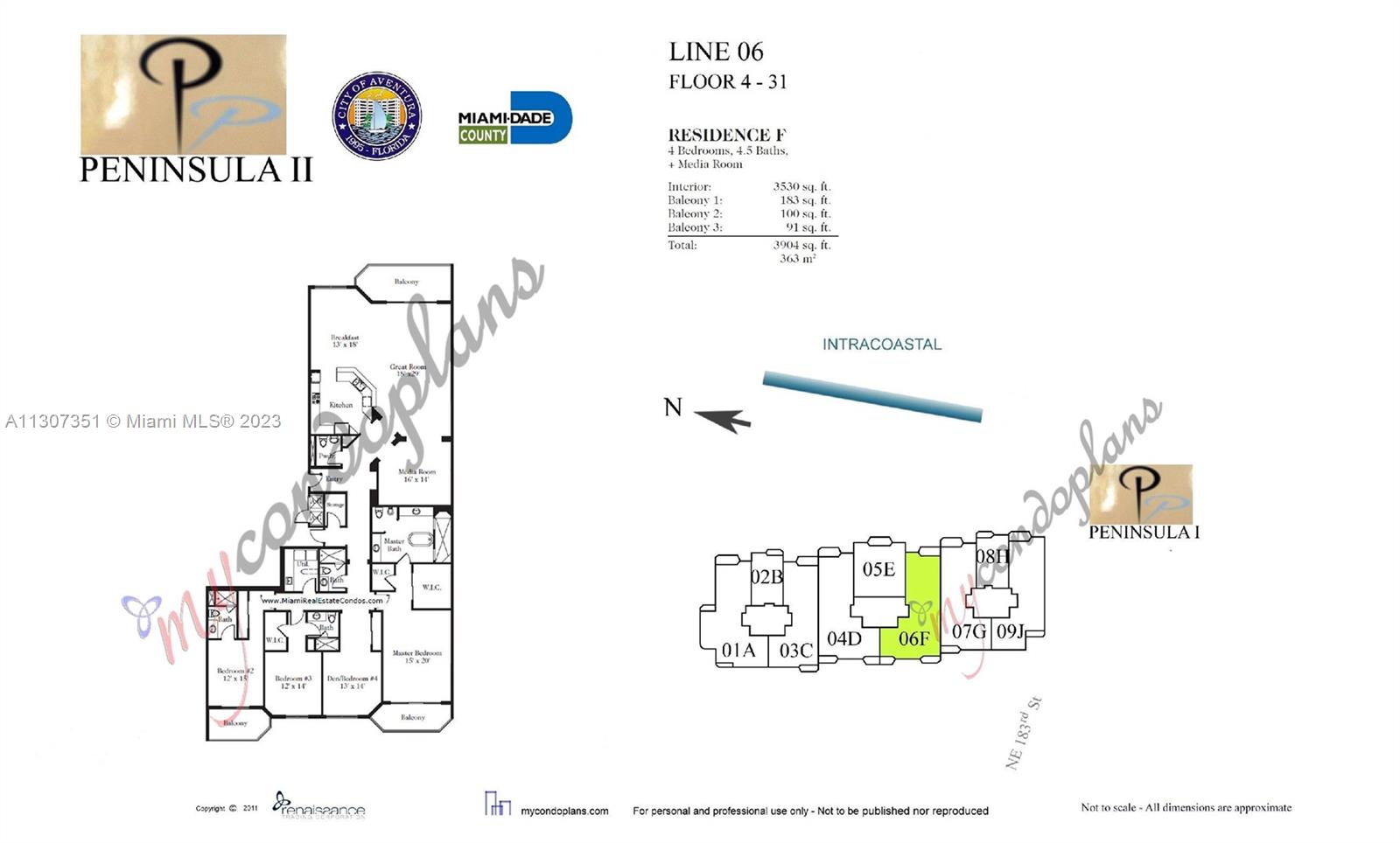 Location Location! Stunning views in luxurious The Peninsula II Condo, This lower PH is one of the most sought after properties in Aventura. Flow through this 3,524 SF unit. 4 Bed, 4.5 Bath, plus Den/office/media room has open style kitchen, laundry room, custom closets, wine room, storage 3 balcony's, and large storage under AC. East/West open balconies with breathtaking, unobstructed views to the ocean, intracoastal and city. This is a ready to move in dream, just a few minutes from Aventura Mall, Bal Harbor Shops and the Beach /full impact sliding glass doors & windows,/high end appliances/electric shades. A Must See!! Full renovated outstanding common areas, 24 h security/2 swimming pools/3 tennis courts/BBQ area, play center for kids/full service Spa and Gym with daily classes.