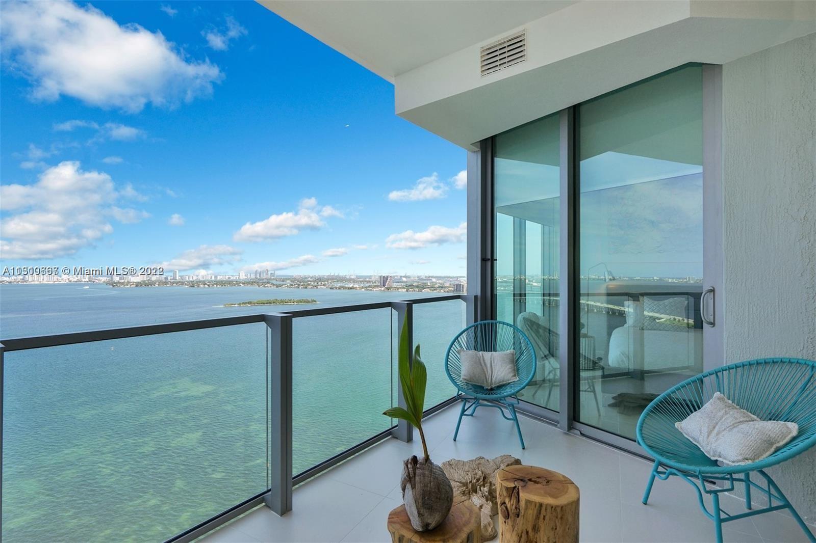 Furnished direct bay view in a luxurious building in Miami’s first man-made beach club directly on the waters of Biscayne Bay with a private beach. Amazing furnished unit 2/2 with a stunning panoramic view of Biscayne Bay and breathtaking views of the Miami Skyline & beautiful sunsets. Adjacent to the popular Design District, Wynwood Arts District, Midtown and Downtown Miami neighborhoods, 10 minutes to Miami Beach. Top of the line appliances, floor to ceiling windows, unit has a private elevator entry. Building lobby level has High-end restaurant, beauty salon, art gallery, business center.