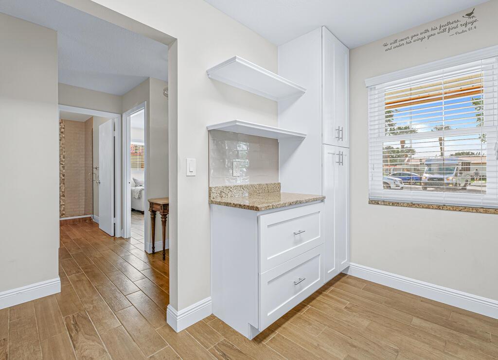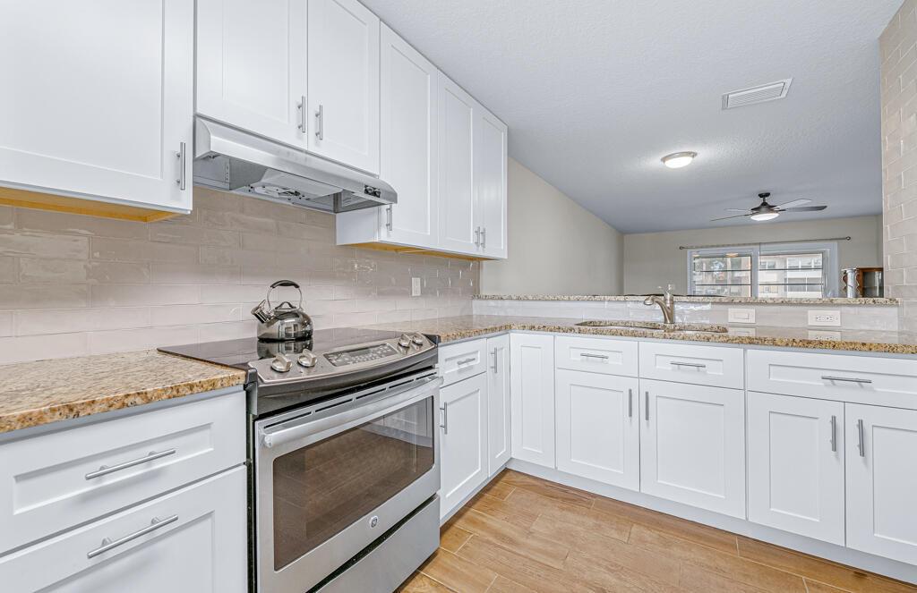 Beautiful end corner unit villa on a desirable street in Golden Lakes. Lake Helen only has villas and no 2 story buildings. Updated 2 Bedroom, 2 Bath Villa. Featuring gorgeous wood look tile flooring. Updated kitchen featuring granite counters and stainless appliances. Bathrooms have both been upgraded featuring stunning tiled showers. The back enclosed patio features a wonderful water view. Hurricane Impact windows throughout the villa. Golden Lakes offers activities year round. Community pool, Spa, Gym, Billiard Room, Bocce, Game/Card Room and many activities and shows in the clubhouse. Golden Lakes is conveniently located just minutes from great shopping, restaurants, and the FL Turnpike. Come Enjoy everything this community has to offer.