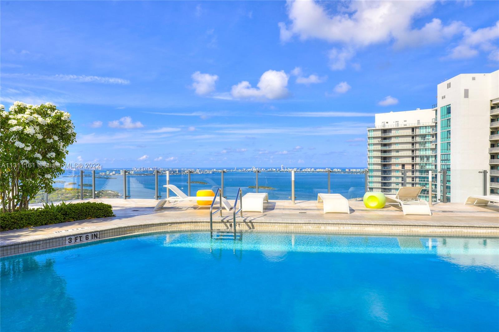 Inspired and designed by renowned Karim Rashid, Paraiso Bayviews offers the best amenities featuring a gorgeous rooftop pool with stunning panoramic views of the bay and city, grilling and dining area, hot tub, heated pool on amenities level, tennis courts, fitness center and spa, theater, game and children's room and clubhouse. Unit features gorgeous bay views, 1bed/1.5 baths, Porcelain floors throughout, Italian cabinets in kitchen and bathroom, quartz counters, Bosch appliances, washer/dryer, floor to ceiling windows, large balcony was access from living & bedroom. New backsplash and paint throughout. Centrally located within minutes to Design District, Midtown, Wynwood, Brickell and Adrienne Arsht Center. 2 dogs allowed no weight restrictions. Building allows 30 day min rentals.