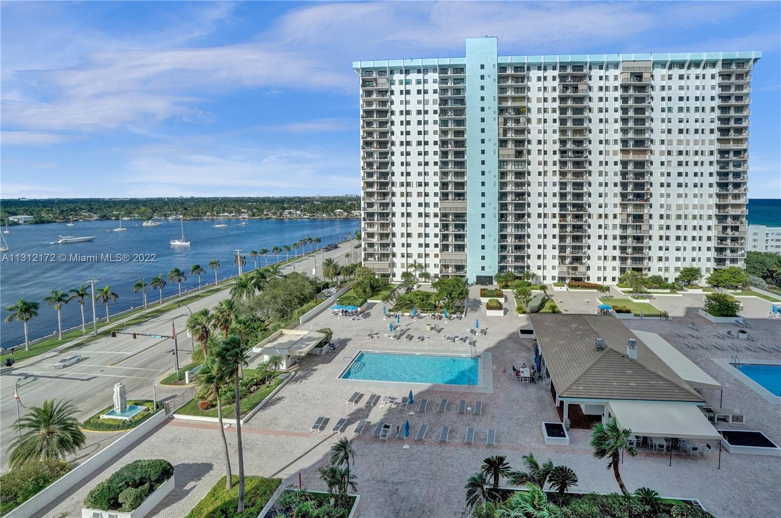 Location Location Location 1 Bedroom 1.5 baths, 1200sq ft on Hollywood Beach. Nestled between the Atlantic Ocean and South Lake this condo faces pool deck with water views on all sides. In original condition this gem awaits your imagination to make it your own. Two oversize sliding doors open onto large balcony overlooking two heated pools and cafe on the pool deck. Large living area with separate dining area, could easily be converted to second bedroom/den. Huge primary bedroom with spacious walk-in closet and vanity. Eat in kitchen w/water views. Washer/ dryer inside unit. Building offers every amenity... Pickleball,Basketball, golf putting green, two tennis courts, 2 heated pools, barbeque grills, cafe open for breakfast, lunch and dinner. Movie nights, socials. Come join the fun.