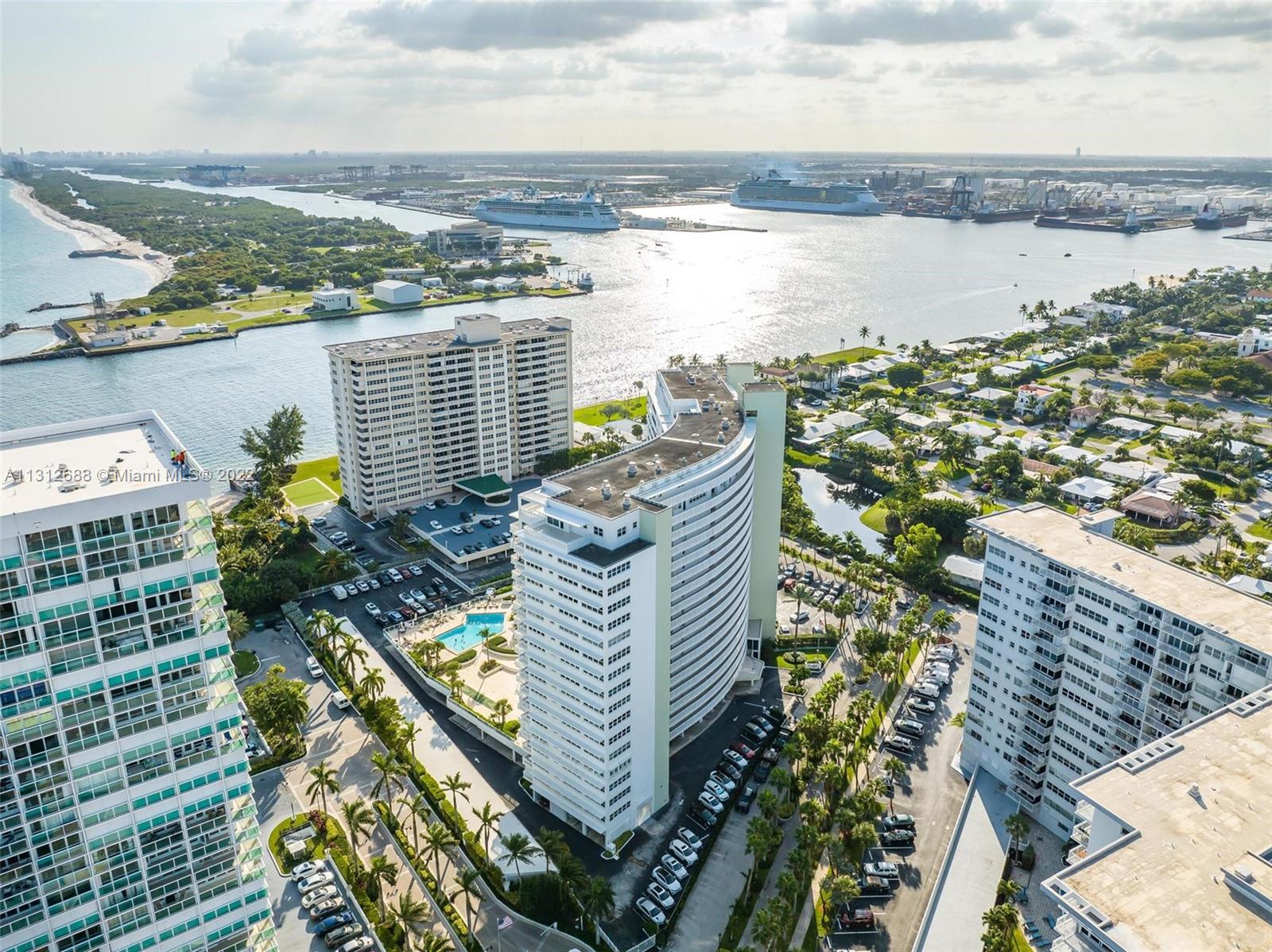 Watch the cruise ships glide by from this rarely available “01” line at Everglades House. Oversized corner unit with wraparound balcony featuring East, South and West views of the ocean, the Port and the Intracoastal. Impact windows and shutters. Best Location: minutes to Fort Lauderdale Beach, major highways, 17th St shopping & dinning district, Port Everglades and Fort Lauderdale Airport. Two large bedrooms with amazing closet space, 2 1/2 baths, spacious kitchen with breakfast corner facing the port, wood flooring throughout main living areas. The building offers many amenities including a pool area with BBQ stations and deeded beach access.